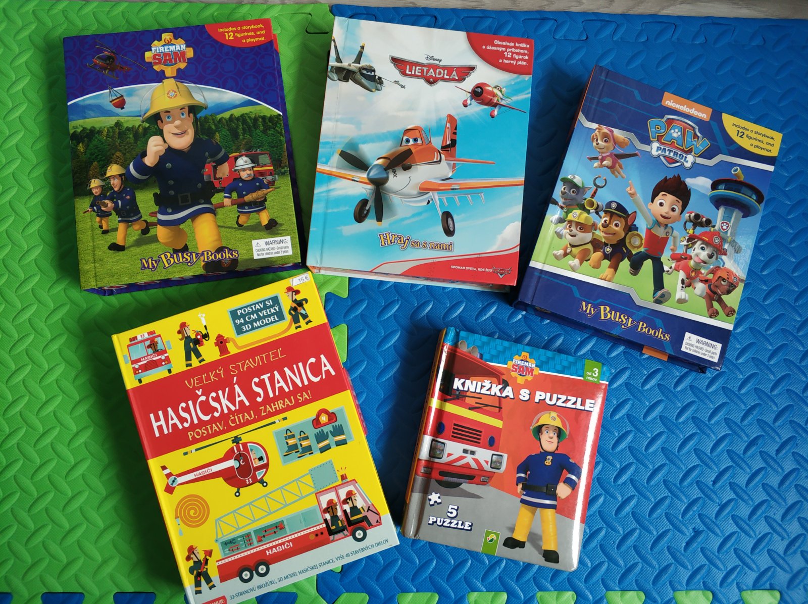 Paw Patrol, Lietadla, Poziarnik Sam - knizka, v ktorej vnutri je velka hracia plocha a figurky - vsetko kompletne, kazde hrane asi raz...bez akychkolvek poskodeni....kus 8.5e