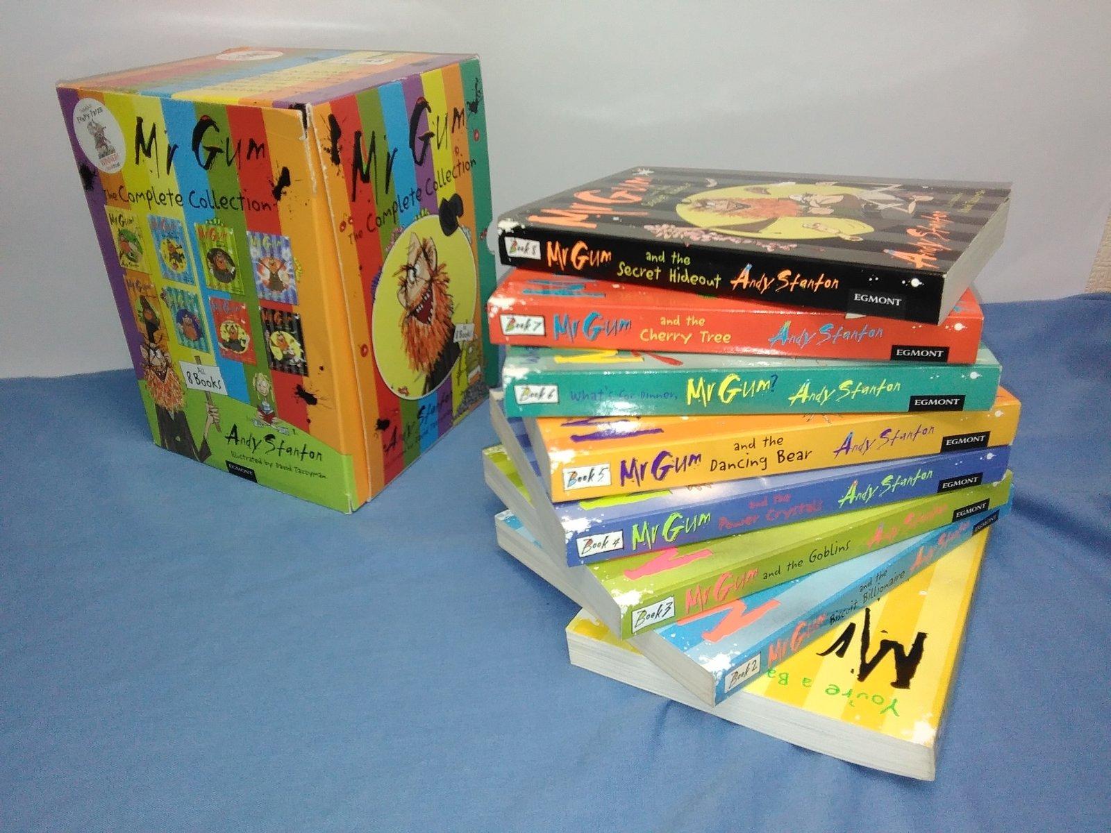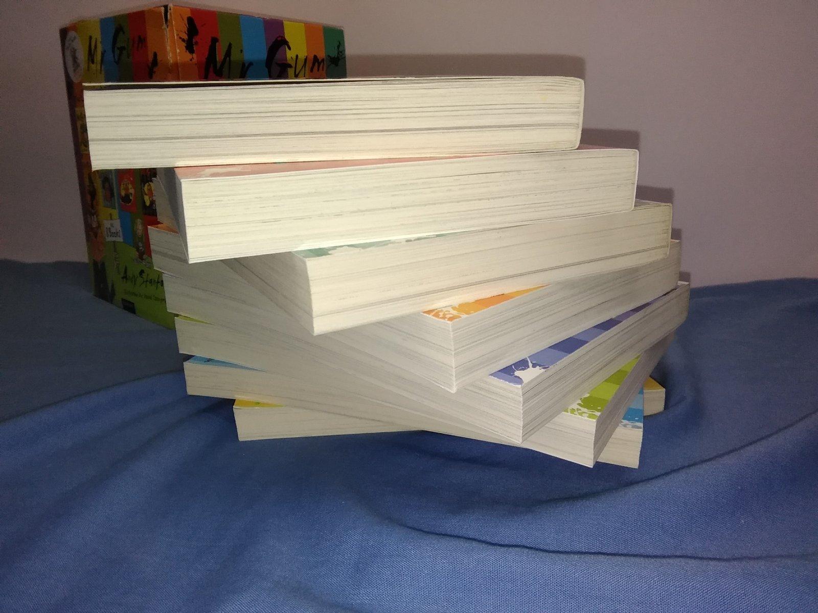 Kompletka pribehov uleteneho Mr. Guma plus doplnova kniha s nalepkami.