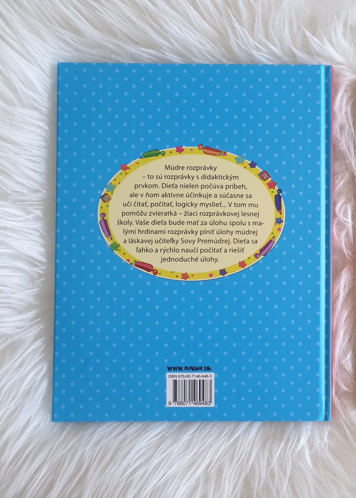 Múdre rozprávky – to sú rozprávky s didaktickým prvkom. Dieťa nielen počúva príbeh, ale v ňom aktívne účinkuje a súčasne sa učí čítať, počítať, logicky myslieť... V tom mu pomôžu zvieratká – žiaci rozprávkovej lesnej školy. Vaše dieťa bude mať za úlohu spolu s malými hrdinami rozprávky plniť úlohy múdrej a láskavej učiteľky Sovy Premúdrej. Dieťa sa ľahko a rýchlo naučí počítať a riešiť jednoduché úlohy, 80 strán