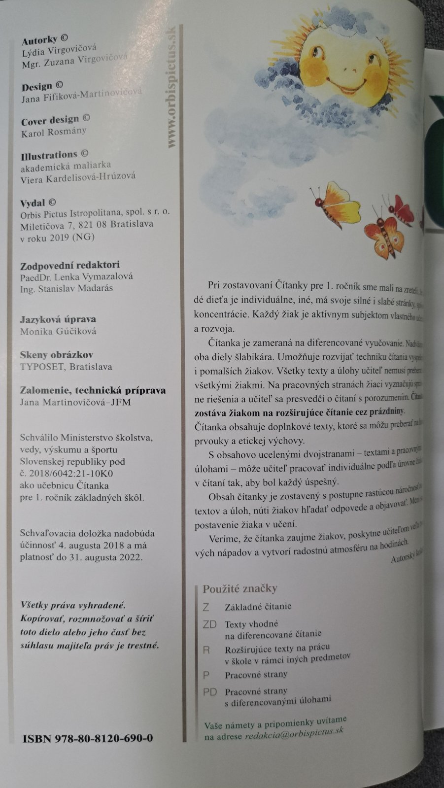 Čítanka pre 1. ročník ZŠ, autor Virgovičová.