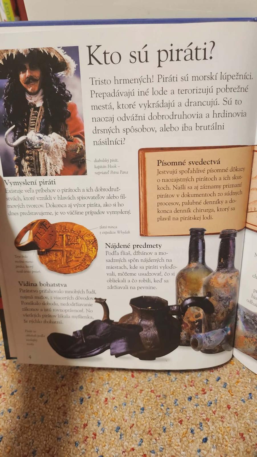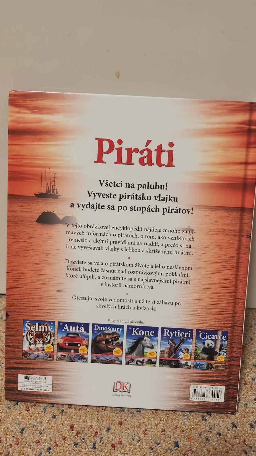 V tejto obrázkovej encyklopédii nájdete mnoho zaujímavých informácií o pirátoch, o tom, ako vzniklo ich remeslo a akými pravidlami sa riadili, a prečo si na lode vešali vlajky s lebkou a skríženými hnátmi. Dozviete sa veľa o pirátskom živote a jeho neslávnom konci a zoznámite sa s najslávnejšími pirátmi v histórii námorníctva.
