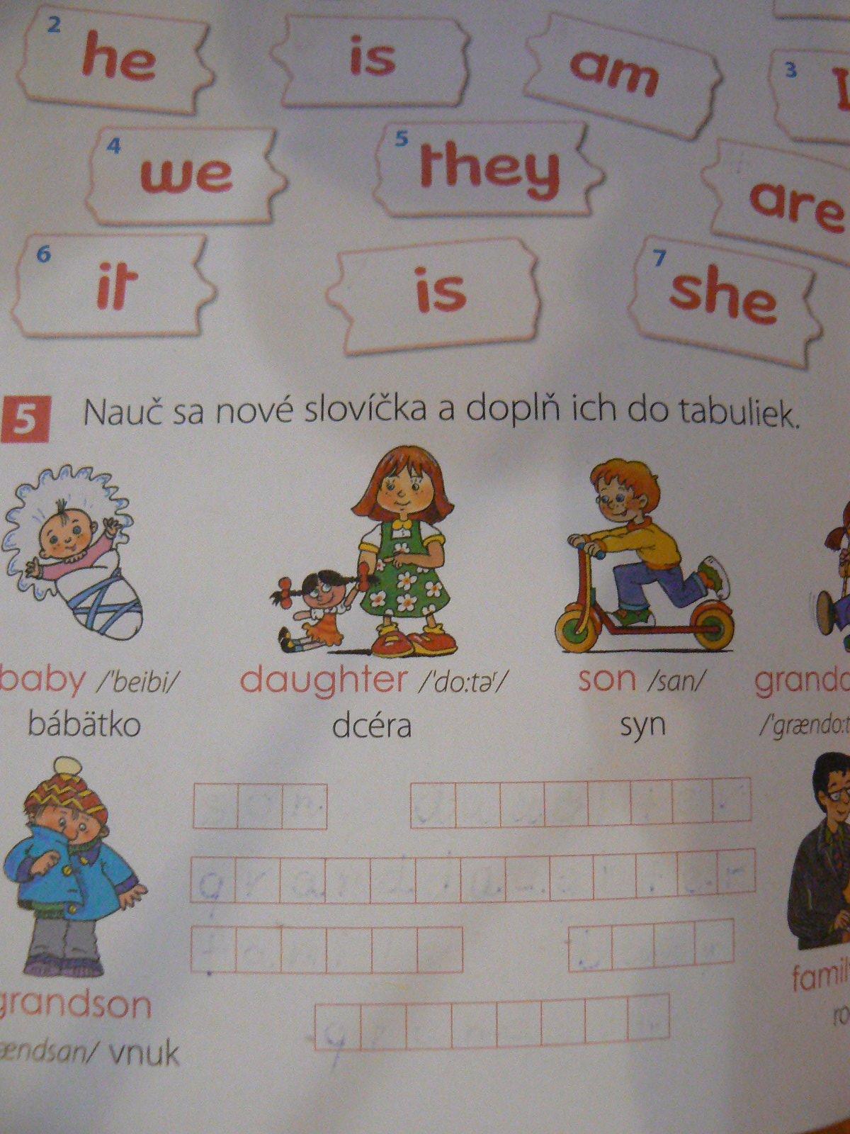 Angličtina farebné slovíčka, s audioknihou, na precvičovanie angličtiny pre prvý stupeň. Vyplnené boli len štyri strany, sú vygumované, ostalo to trochu vidieť. ostatné strany sú nepopísané...