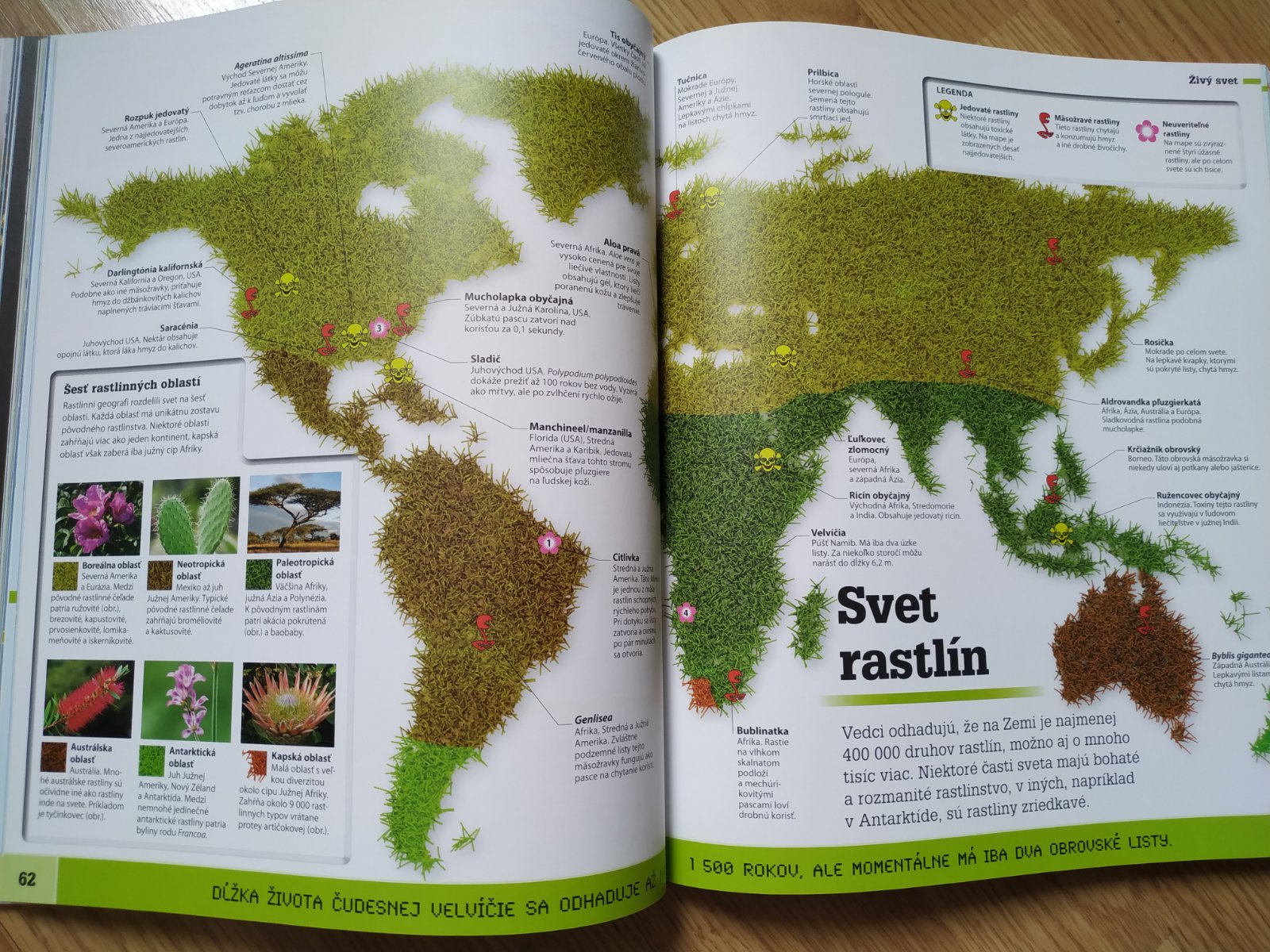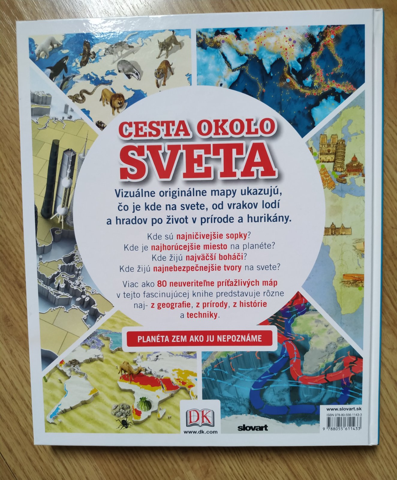 Cesta okolo sveta je unikátna obrazová encyklopédia s plnofarebnými mapami, ktoré ukazujú, kde na svete sú najvyššie budovy, najdlhšie rieky, najnebezpečnejšie zemetrasenia alebo kde nájdete zvieratá, ktoré svetielkujú. Témy sú rozdelené do šiestich kapitol: