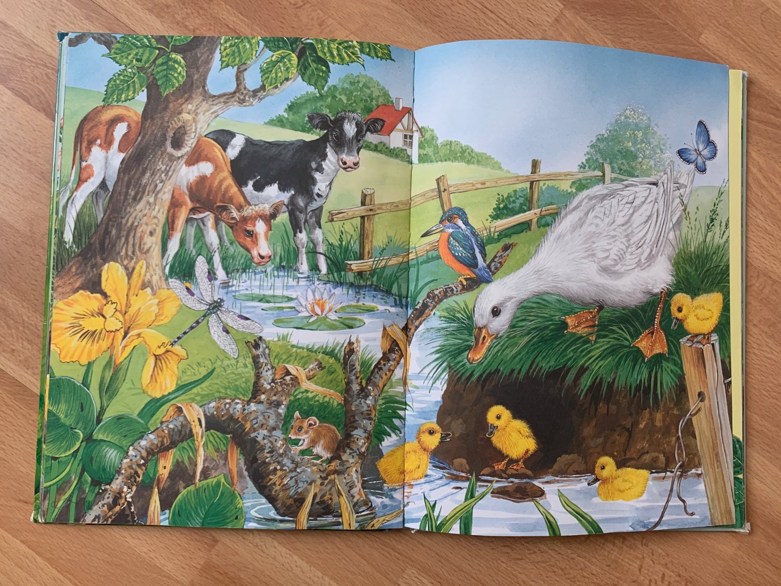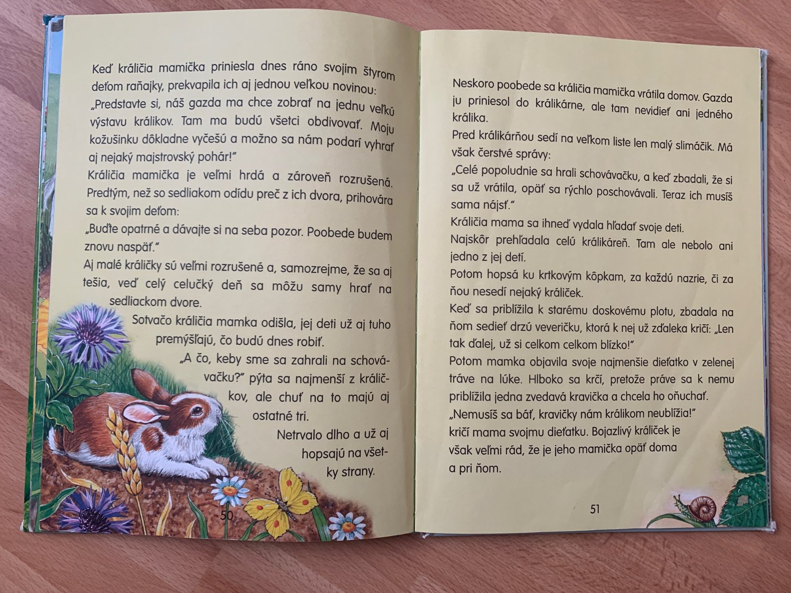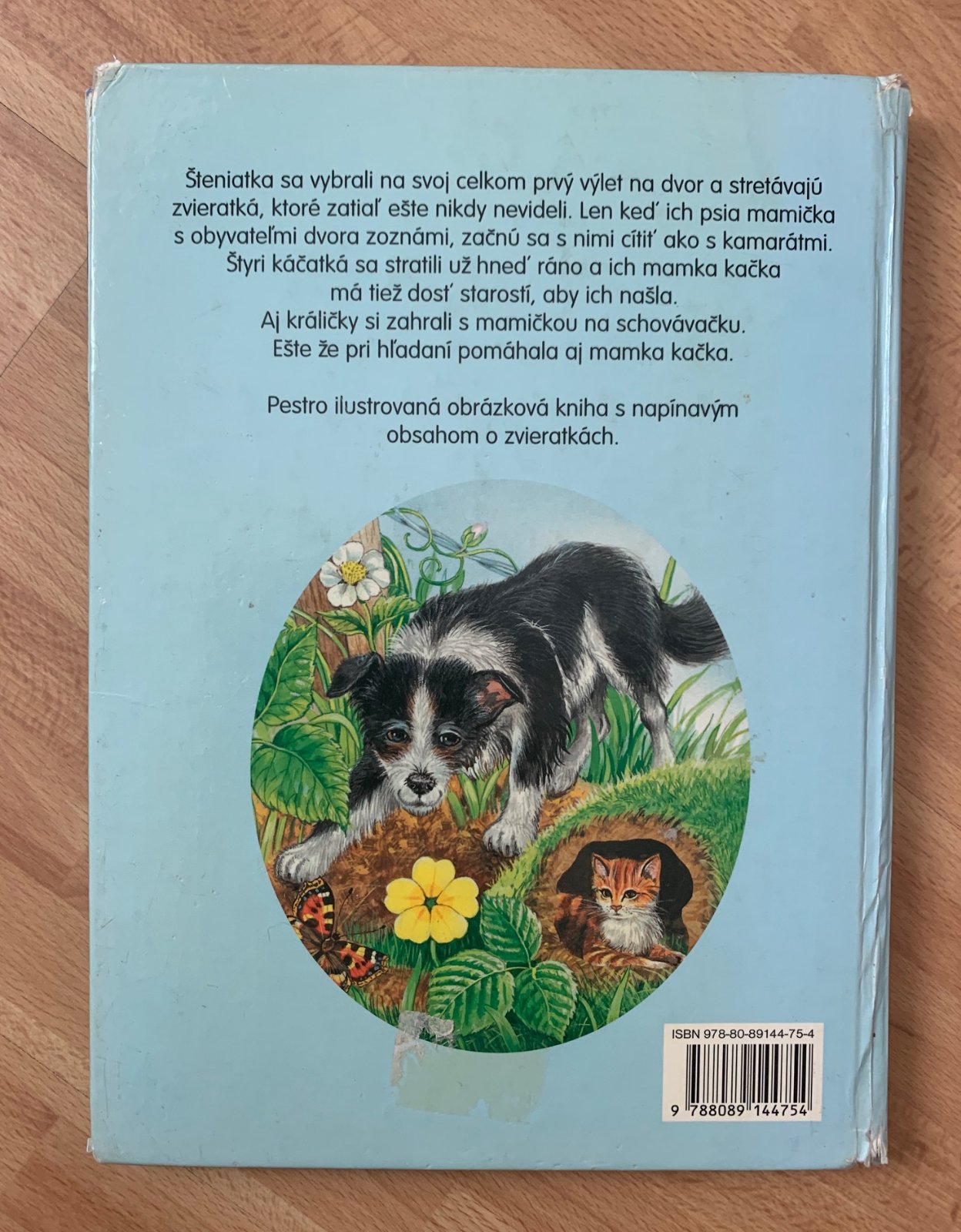 Šteniatka sa vybrali na svoj celkom prvý výlet na dvor a stretávajú zvieratká, ktoré zatiaľ ešte nikdy nevideli. Len keď ich psia mamička s obyvateľmi dvora zoznámi, začnú sa s nimi cítiť ako s kamarátmi. Štyri káčatká sa stratili už hneď ráno a ich mamka kačka má tiež dosť starostí, aby ich našla. Aj králičky si zahrali s mamičkou na schovávačku. Ešte že opri hľadaní pomáhala aj mamka kačka.