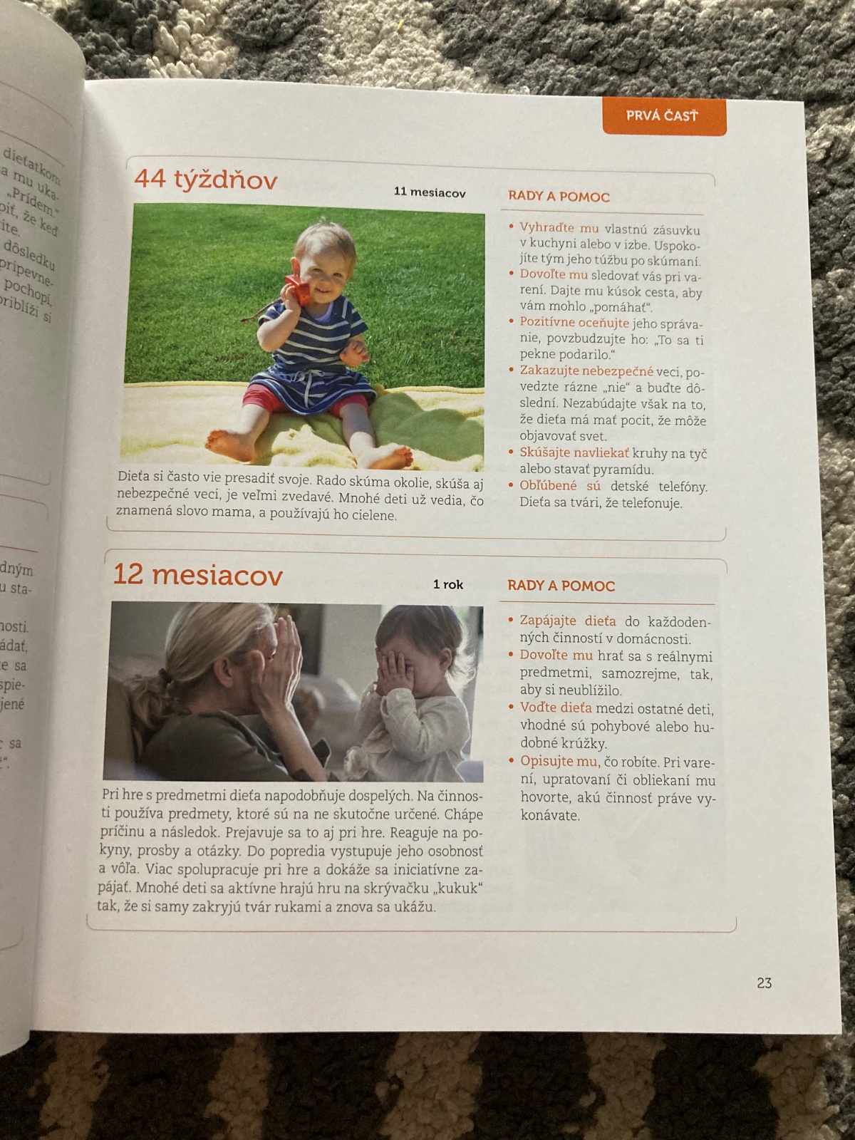 🔹V tejto prehľadne členenej publikácii nájdete okrem informácií, ako sa dajú rozvíjať jednotlivé schopnosti dieťaťa, aj námety, ako dosiahnete pokojný spánok bábätka, osvojovanie hygienických návykov, rady a pomoc pri odúčaní od plienok, prehľad hračiek vhodných pre jednotlivé vekové kategórie, inšpirácie na výrobu hračiek či testy na zistenie schopnosti vášho dieťatka. Overte si, či sa vaše dieťa vyvíja správne a kedy je už potrebné vyhľadať odborníka.