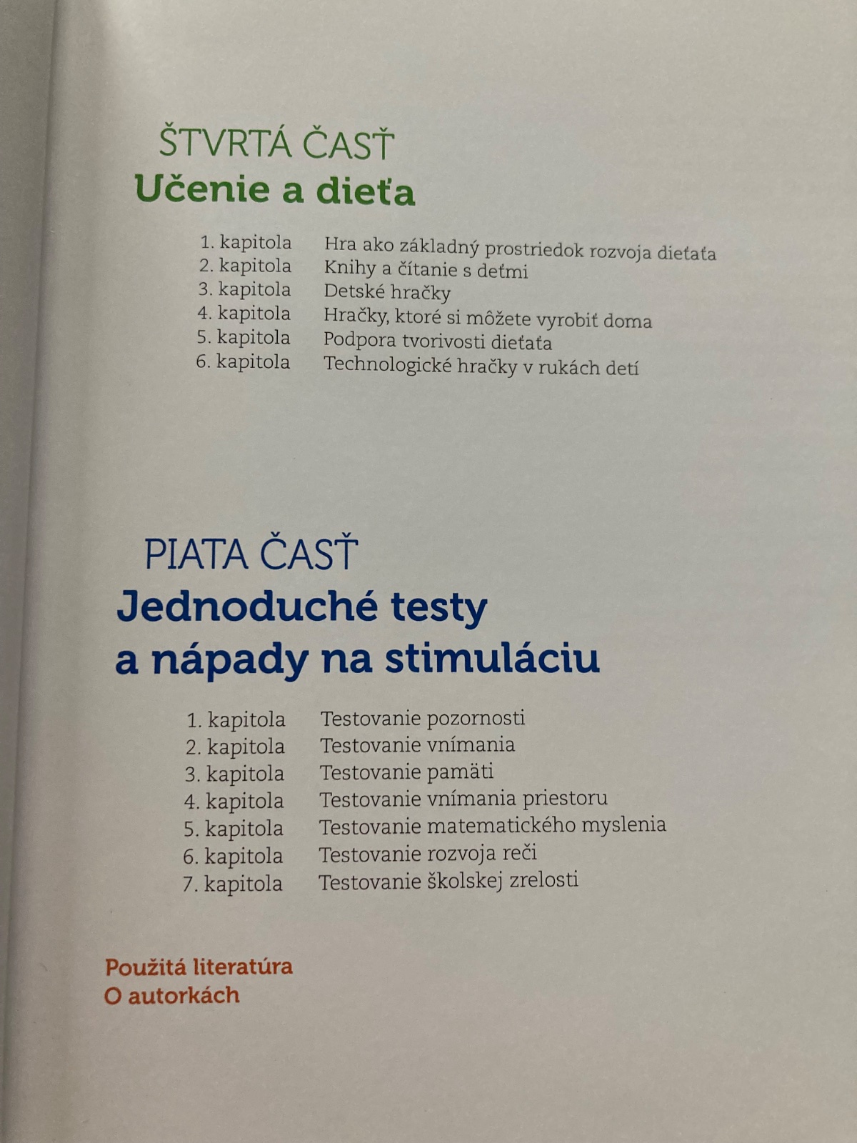 🔹Kolektív autoriek v zložení – psychologičky, pediatrička a špeciálna pedagogička – vám ponúka publikáciu, vďaka ktorej sa dozviete, ako možno zmysluplne tráviť chvíle so svojimi deťmi. Autorky prezentujú svoj odborný pohľad, čerpajú z dlhoročných skúseností a poradia vám, ako deti testovať a vzápätí rozvíjať ich schopnosti v jednotlivých obdobiach od novorodenca do 6 rokov. Jednotlivé etapy vývinu dieťaťa sú doplnené ilustračnými fotografiami.