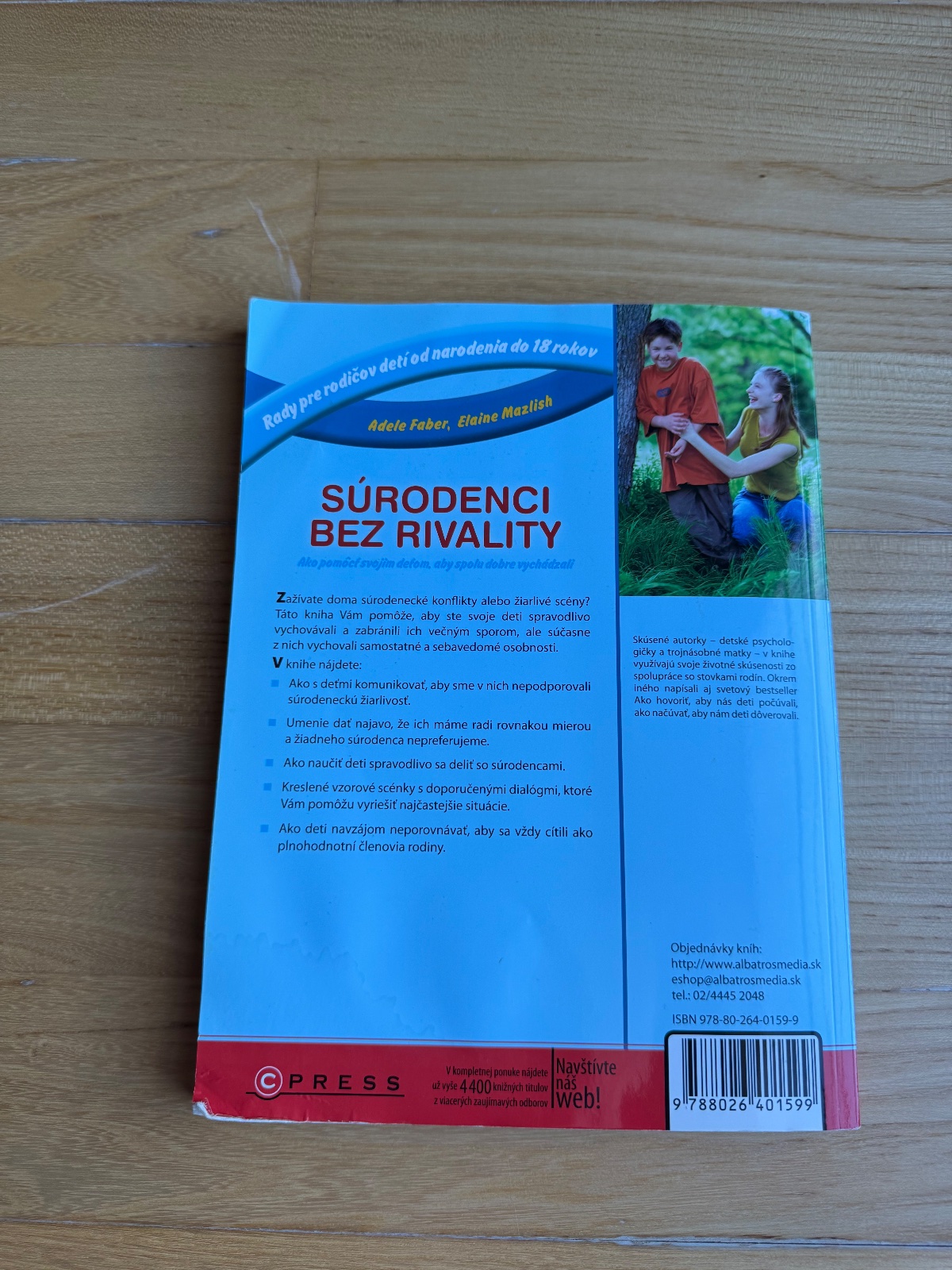 Kniha o tom ako pomôcť svojim deťom, aby spolu dobre vychádzali. skutočne dobrá, nám pomohla. Kniha je v dobrom čítanom stave a viem že ešte pomôže rodičom súrodencov.