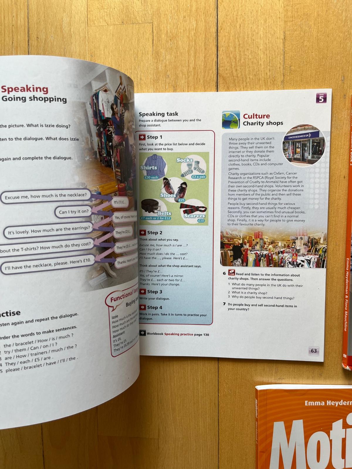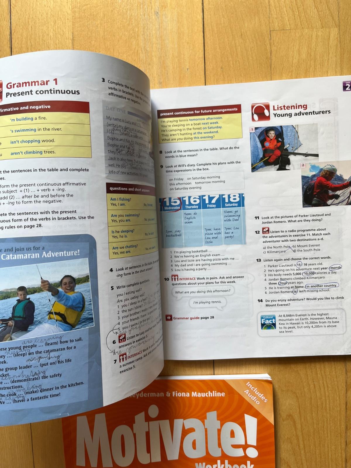 Predam 2x ucebnica + PZ anglicky jazyk MOTIVATE 2, používame v 7. ročníku/Sekunda.