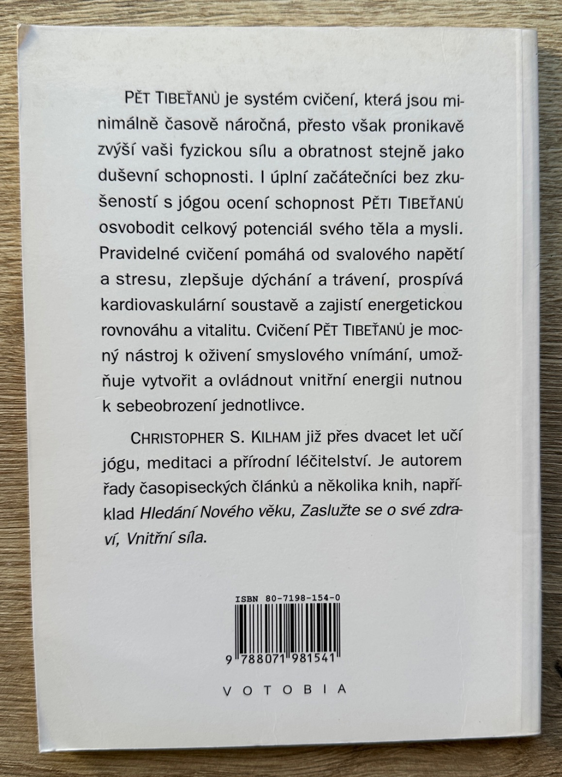 Pět dynamických cviků, které posílí zdraví, dodají energii a životní sílu. Pět Tibeťanů je jogínský systém jednoduchých, časově i fyzicky nenáročných, ale velmi účinných cviků, které se autor před více než třiceti lety naučil v tibetském klášteře v pohoří Himálaje a posléze je představil západní civilizaci. Pravidelné cvičení Pěti Tibeťanů podstatně zvyšuje pružnost těla i duševní sílu, odstraňuje psychické i svalové napětí, oživuje naše smysly, zlepšuje dýchání a trávení, blahodárně působí na oběhovou soustavu, navozuje klid a celkovou pohodu.