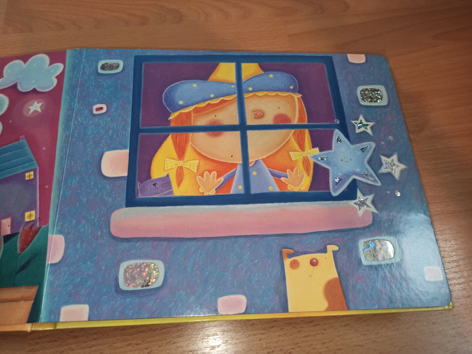 Velikansky format leporela s trblietkami :-) Vsetky knihy su na podobny sposob - stranky maju male vyrezy, kde presvita pozlatko :-)