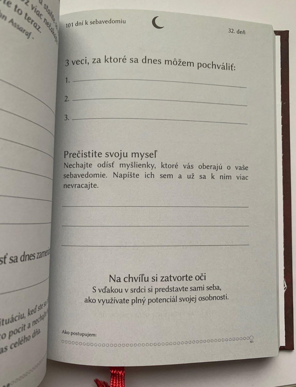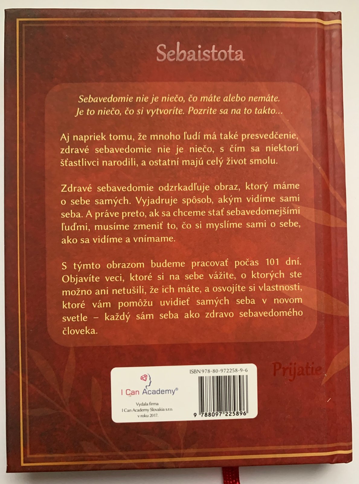 Zdravé sebavedomie nie je niečo, s čím sa niektorí šťastlivci narodili, a ostatní majú celý život smolu. Je to spôsob, akým vidíme sami seba.Ak sa chceme stať sebavedomejšími ľuďmi, musíme zmeniť to, čo si myslíme sami o sebe, ako sa vidíme a vnímame. S týmto obrazom budeme pracovať počas 101 dní.Objavíte veci, ktoré si na sebe vážite, o ktorých ste možno ani netušili, že ich máte, a osvojíte si vlastnosti, ktoré vám pomôžu uvidieť samých seba v novom svetle - ako zdravo sebavedomého človeka.