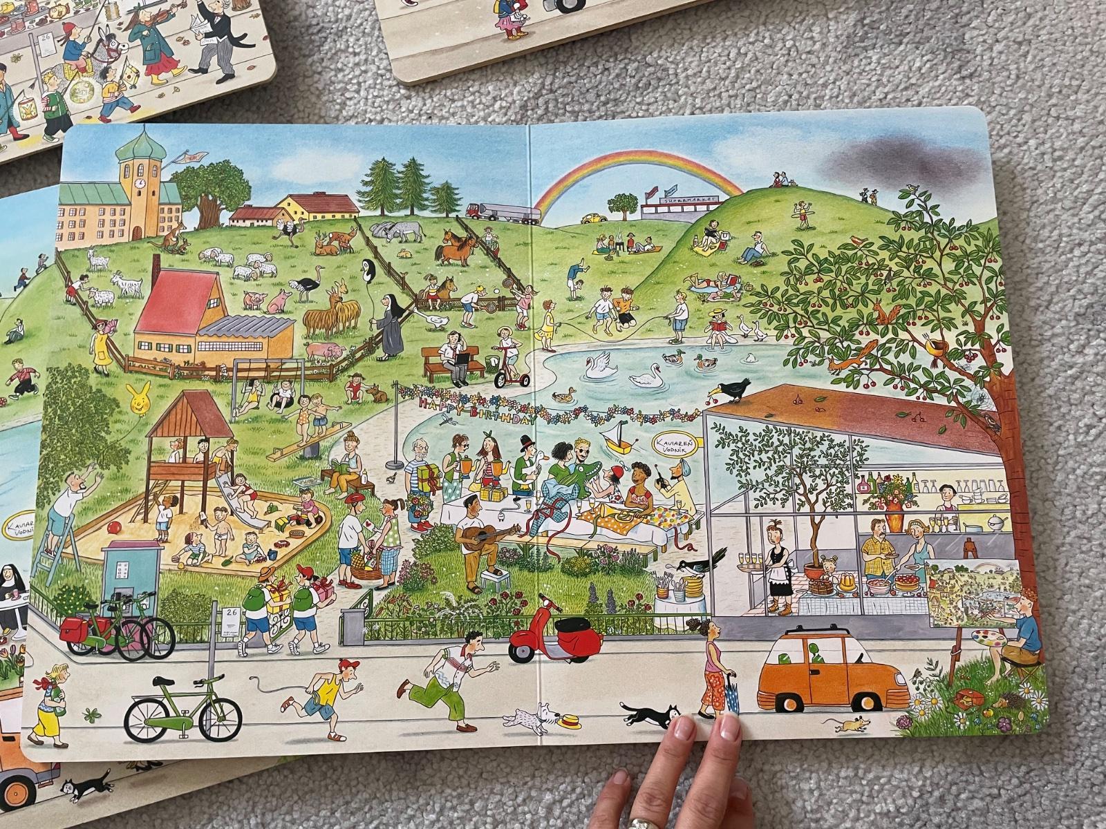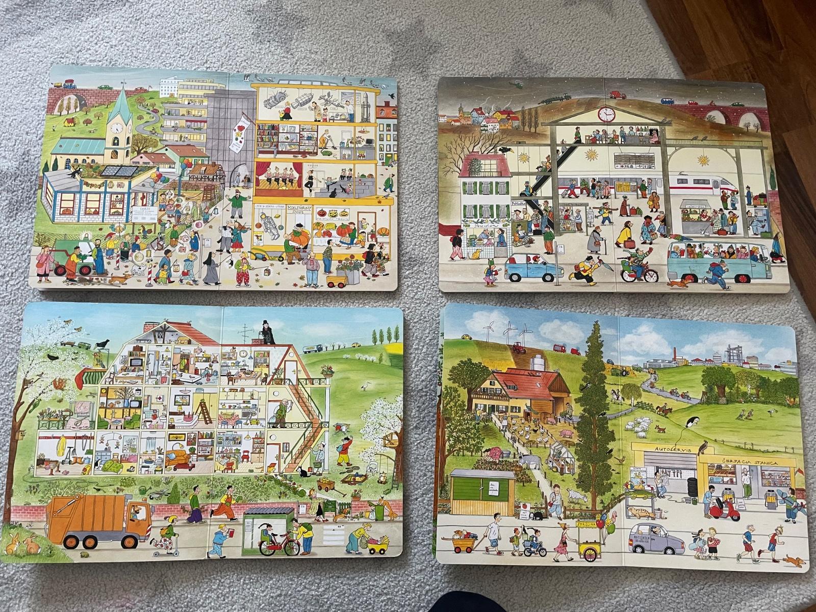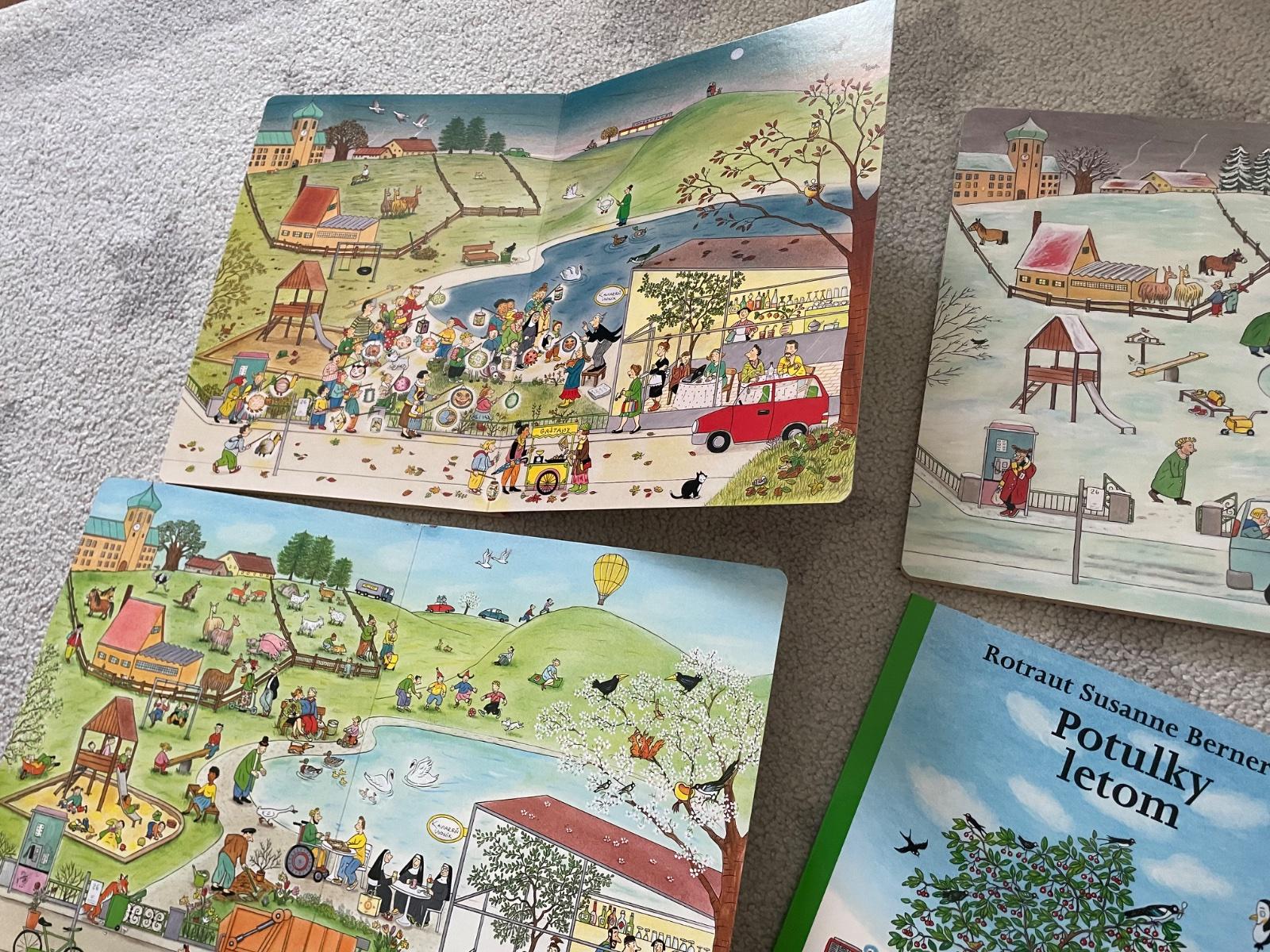 Obrazkove knihy. Prechadzaju a nadvazuju cez vsetky rocne obdobia a dieta si moze vytvarat vlstne pribehy, tvorba slov, viet, predstavivost, kreativita. Vzdy si clovek vsimne iny detail. My sme ich mali velmi radi.