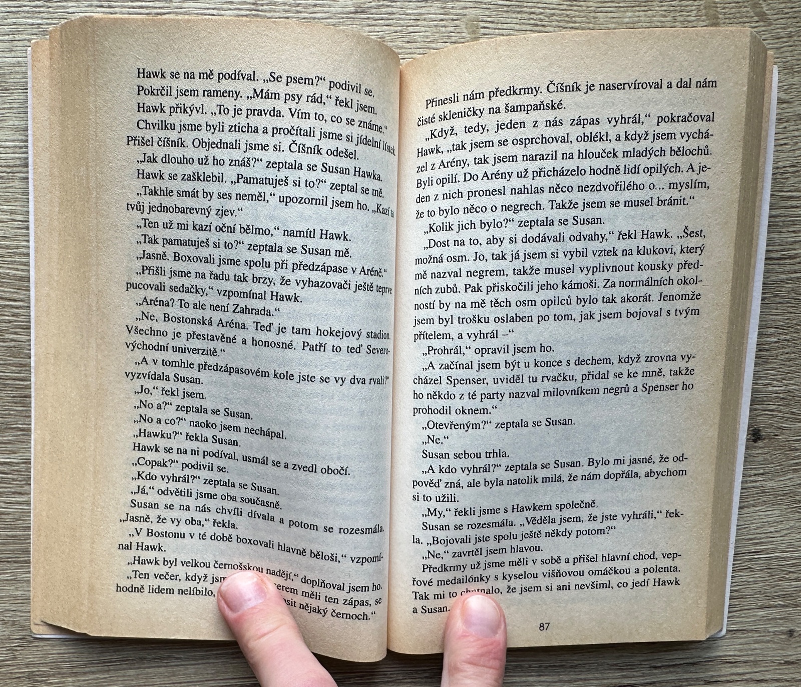 ☘️❤️Kniha citana stav ako nova, bez vad a chyb, mozete dat niekomu aj ako darcek.Před deseti lety zachránil Spenser Paula před neblahým vlivem jeho otce.Tentokrát Paulovi zmizela matka a ten se obrátí s žádostí o pomoc na Spensera.A ten mu samozřejmě pomůže.A dokonce nám tentokrát i poodhalí něco ze svého dětství,což má samozřejmě na svědomí Suzan,jeho milovaná přítelkyně.A také zde vstupuje na scénu Pozorná panna,tedy vlastně Perla,která má ráda dobroty a procházky.A co by to bylo za spenserovku,kdyby tam chyběl Hawk a nějaké to střílení.Nebojte,nic nechybí.A čte se to skvěle.Překlad: Vilma Anýžová