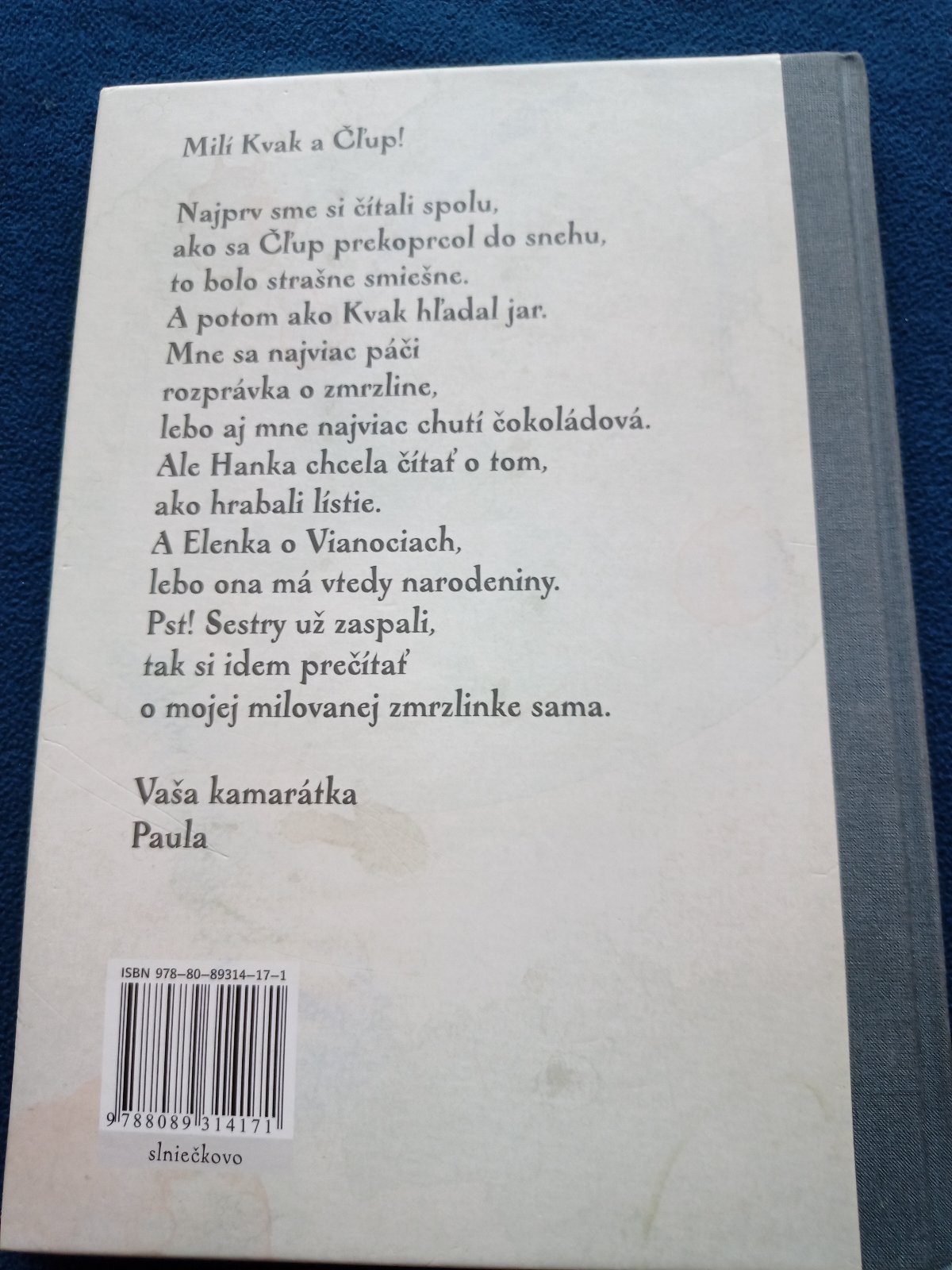 Ďalšie rozprávky o dvoch kamarátoch Kvakovi a Čľupovi sú jednoducho spracované, ľahko pochopiteľné detskému vnímaniu, ale prinášajúce významovo bohaté poznanie sveta. Kniha hovorí o dôležitých a podstatných hodnotách, ako je priateľstvo, odpustenie, vzájomné si všímanie druhých. Krátkym príbehom nechýba napätie, humor a potreba skutočného priateľstva, učia sa slobode, trpezlivosti a zároveň vyjadrujú potrebu toho druhého vedľa seba. Kniha je výnimočne vhodná na prvé čítanie pre deti.