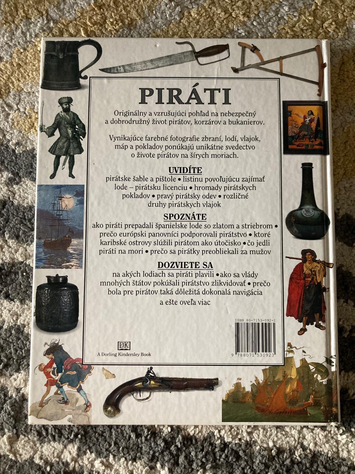 Spoznajte svet pirátov-od barbarských korzárov Stredomoria až po krvilačných bukanierov Španielskej dŕžavy. Originálny a vzrušujúci pohľad na nebezpečný a dobrodružný život pirátov, korzárov a bukanierov. Vynikajúce farebné fotografie zbraní, lodí, vlajok, máp a pokladov ponúkajú unikátne svedectvo o živote pirátov na šírych moriach.