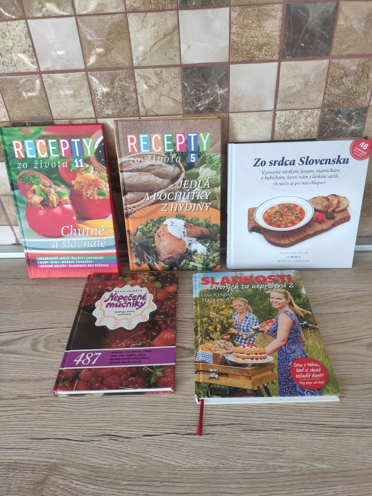 Posuniem 5 ks kuchárskych kníh, mam ich už veľa a nezmestia sa mi už do vyhradených poličiek. Knihy sú ako nové, jediná zo známkamy používania je tá od Emy Tekelyovej. Cena za všetky spolu: 10 €.