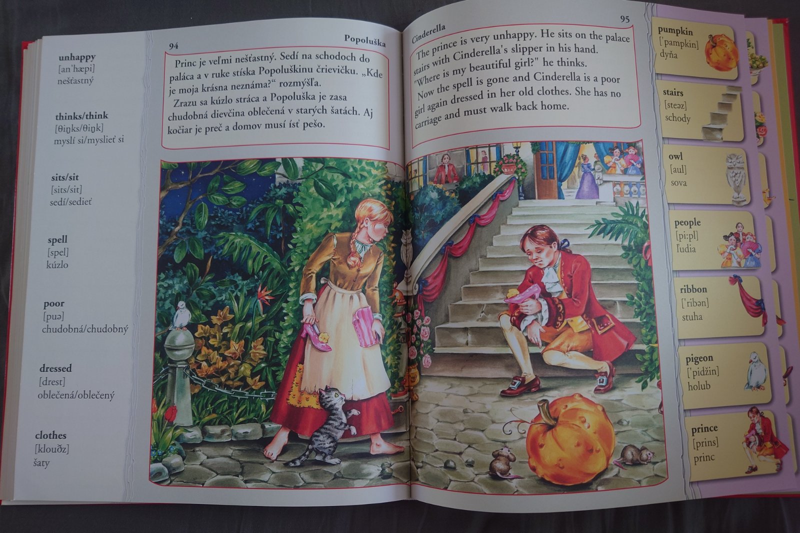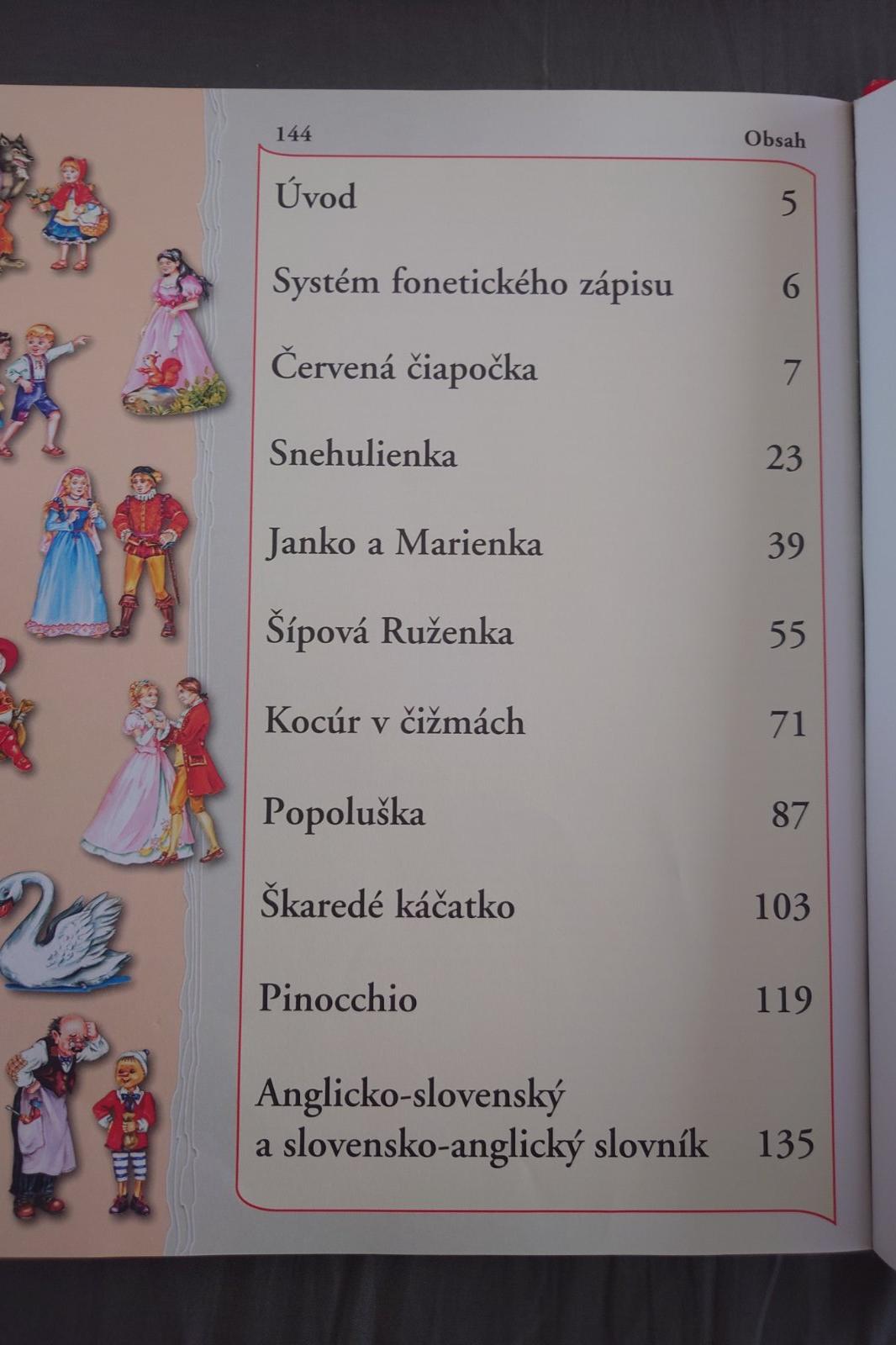 Na jednej strane po slovensky na druhej po anglicky, so slovíčkami