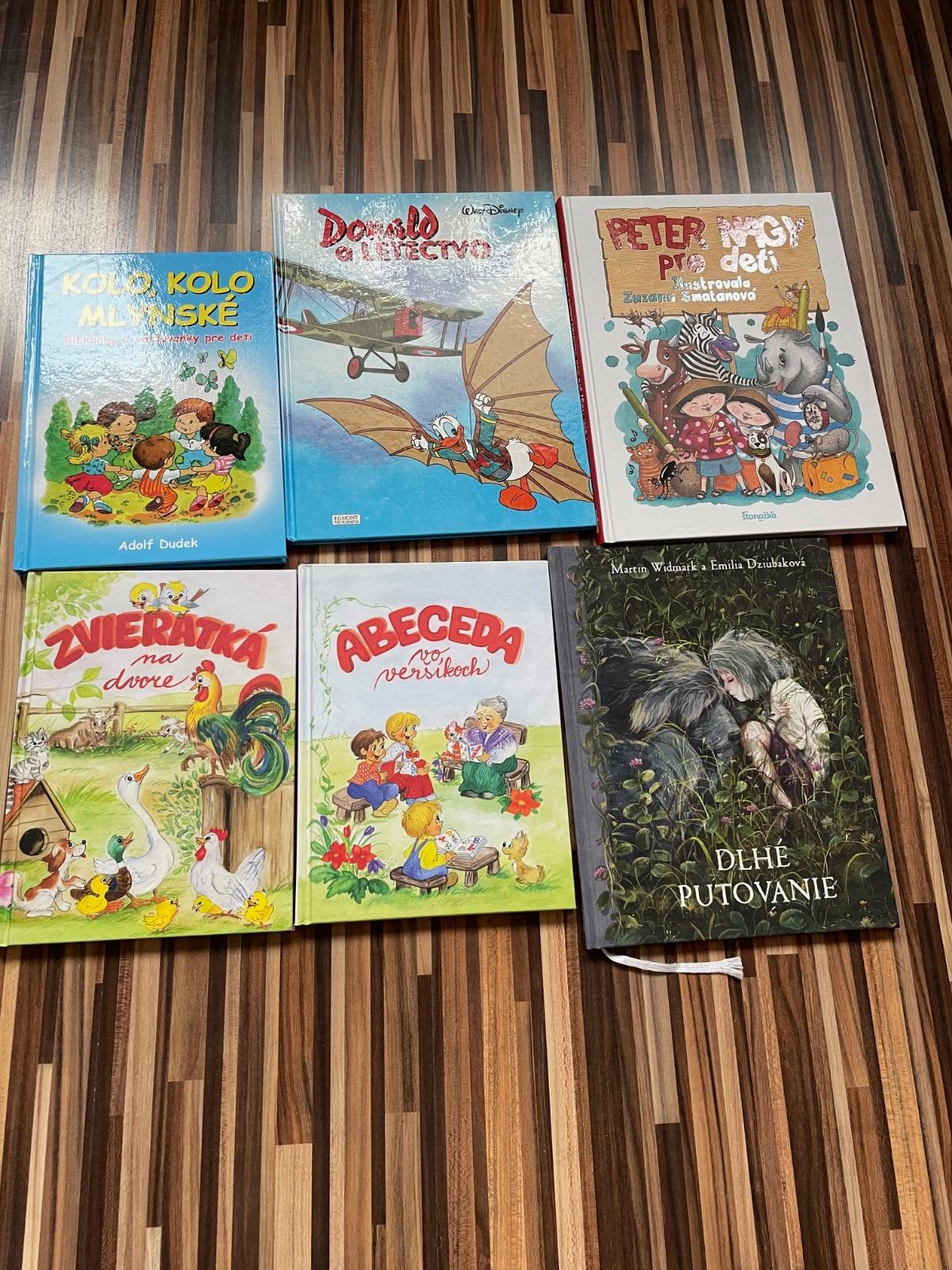 Predám kinky top stav par krat prečítané. Abeceda vo veršíkoch cena4Eurá, Zvieratká na dvore 4Eurá, Kolo, kolo mlýnské 3Eurá, tieto 3 knižky sú riekanky a veršovačky. Dlhé putovanie 7Eur, Donald a letectvo 7Eurá, Peter Nagy pre deti 8Eur tieto sú pre vacsie deti. Vo všetkých knihách sú venovania v prípade zájmu ich môžem odfotiť.