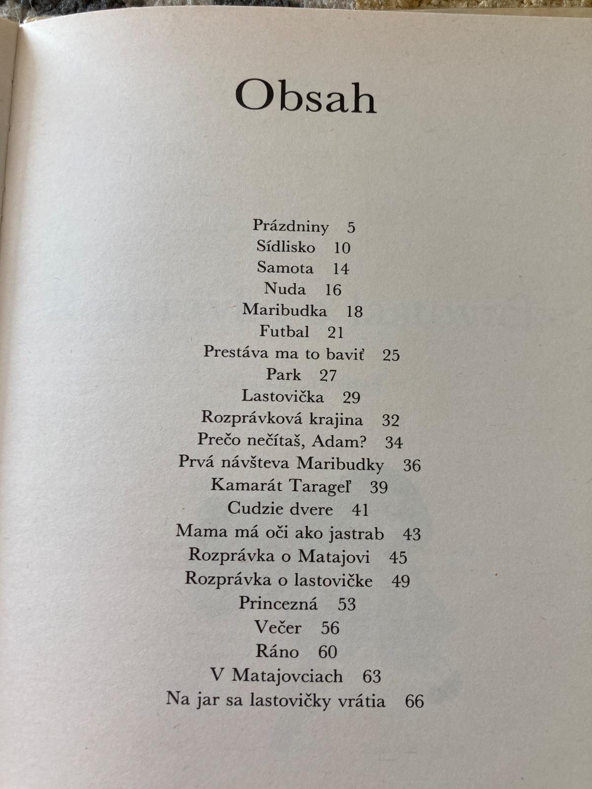 📌Kniha vyrozpráva príbeh tretiaka Adama, ktorému začínajú prázdniny. Musí sa preto presťahovať z Matajovic od starých rodičov do Bratislavy, kde už od marca bývajú rodičia so sestrou Zuzkou. Zoznámi sa aj s Marikou Budkovou, ktorej dal meno Maribudka.