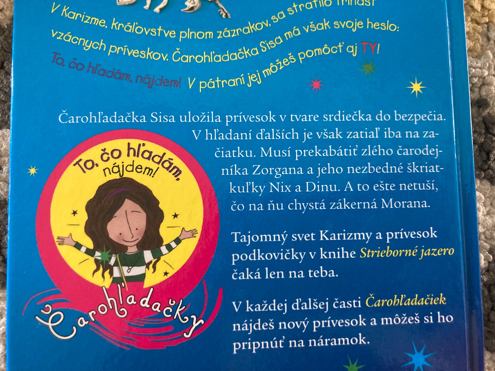 📌V kráľovstve nazývanom Karizma sa stratilo trinásť veľmi vzácnych čarovných strieborných príveskov. Sisa Hradná ich však vypátra! A v tom pátraní jej môžeš pomôcť aj TY. Čarohľadačka Sisa Hradná uložila prívesok v tvare srdiečka do bezpečia, ale v hľadaní je zatiaľ iba na začiatku. Teraz musí spolu s najlepšou priateľkou Nikou prekabátiť zlého čarodejníka Zorgana a jeho poslušné posluhovačky, škriatkuľky Nix a Dinu.