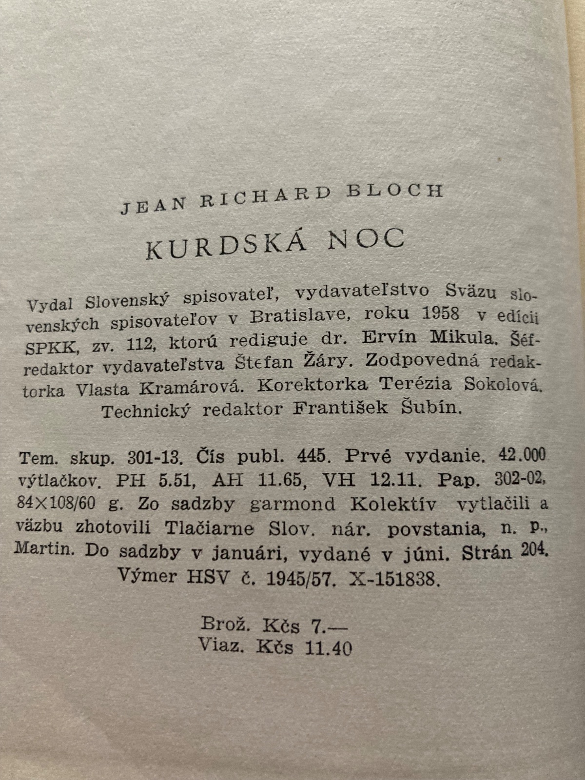 Kurdská noc (1958) je názov prvého slovenského vydania historického románu francúzskeho autora Jeana Richarda Blocha, ktorý v roku 1958 vydalo Slovenské vydavateľstvo krásnej literatúry (Slovenský spisovateľ) v rámci edície SPKK (Spoločnosť priateľov krásnych kníh), pričom kniha sa vyznačuje lyrickým štýlom, orientálnou tematikou a využíva fantastické prvky.