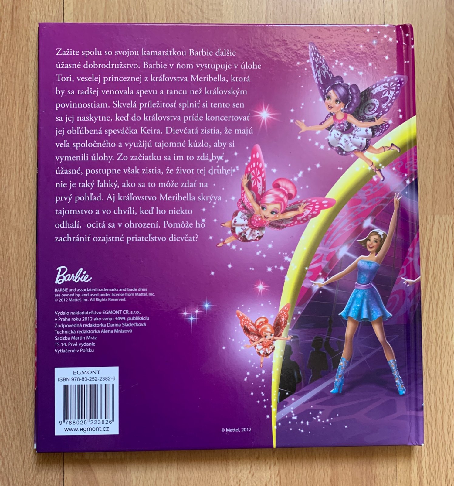 Čítanie a zábava v jednom! Príbeh doplnený samolepkami je skvelý pre začínajúcich čitateľov – súčasne pobaví i poučí. Zažite spolu so svojou kamarátkou Barbie ďalšie úžasné dobrodružstvo. Barbie v ňom vystupuje v úlohe veselej princeznej, ktorá by sa radšej venovala spevu a tancu než kráľovským povinnostiam. Skvelá príležitosť splniť si tento sen sa jej naskytne, keď do kráľovstva príde koncertovať jej obľúbená speváčka Keira. Dievčatá zistia, že majú veľa spoločného a využijú tajomné kúzlo, aby si vymenili úlohy.