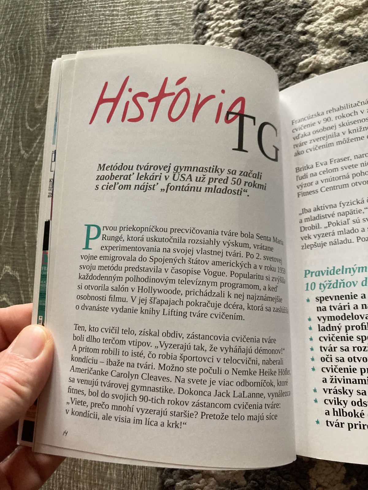 📌 Kniha opisuje špeciálne cviky zamerané na spevnenie svalov tváre, krku a dekoltu, ktoré pomáhajú redukovať vrásky a zlepšovať elasticitu pleti.
