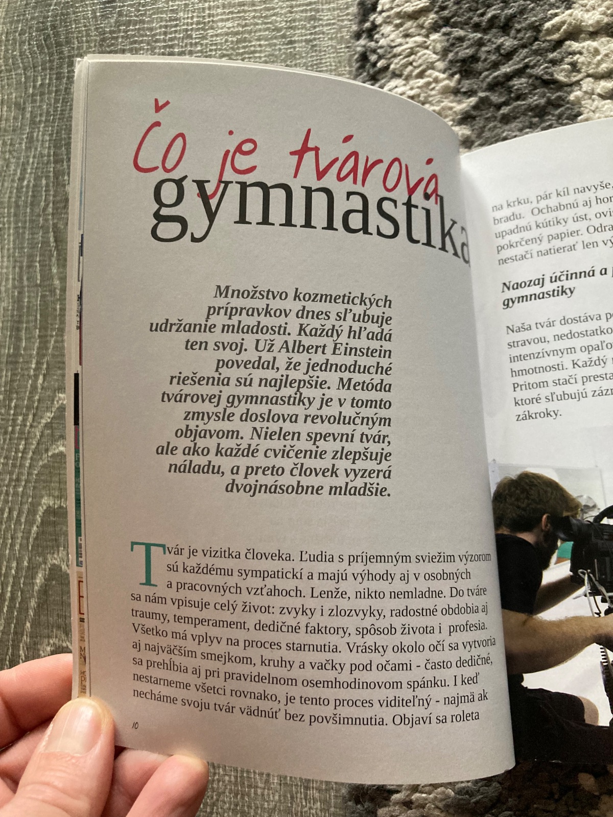 „Na tvári máme viac svalov ako na bruchu a tie stačí spevniť. Vďaka pravidelnému cvičeniu aj športovec vyzerá lepšie a mladšie, než ten, kto sedí doma na gauči. To isté platí aj pre tvár“.
