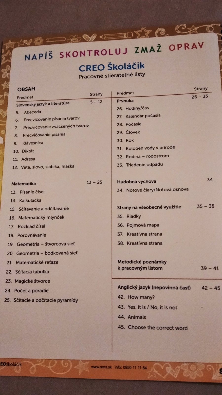 Pracovné listy so stieratelnym povrchom, je potrebné dokúpiť fixku, na tých bielych stranách vidno,že bolo písané,viď fotky