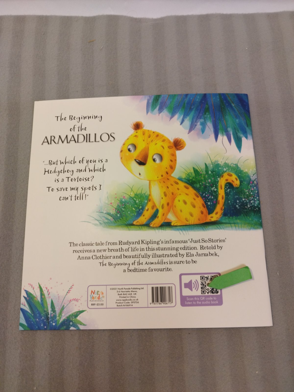 Na zadnej strane je QR kod - moznost vypocut si nahravku = nacitany pribeh.