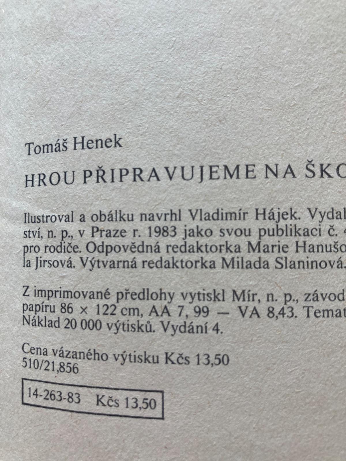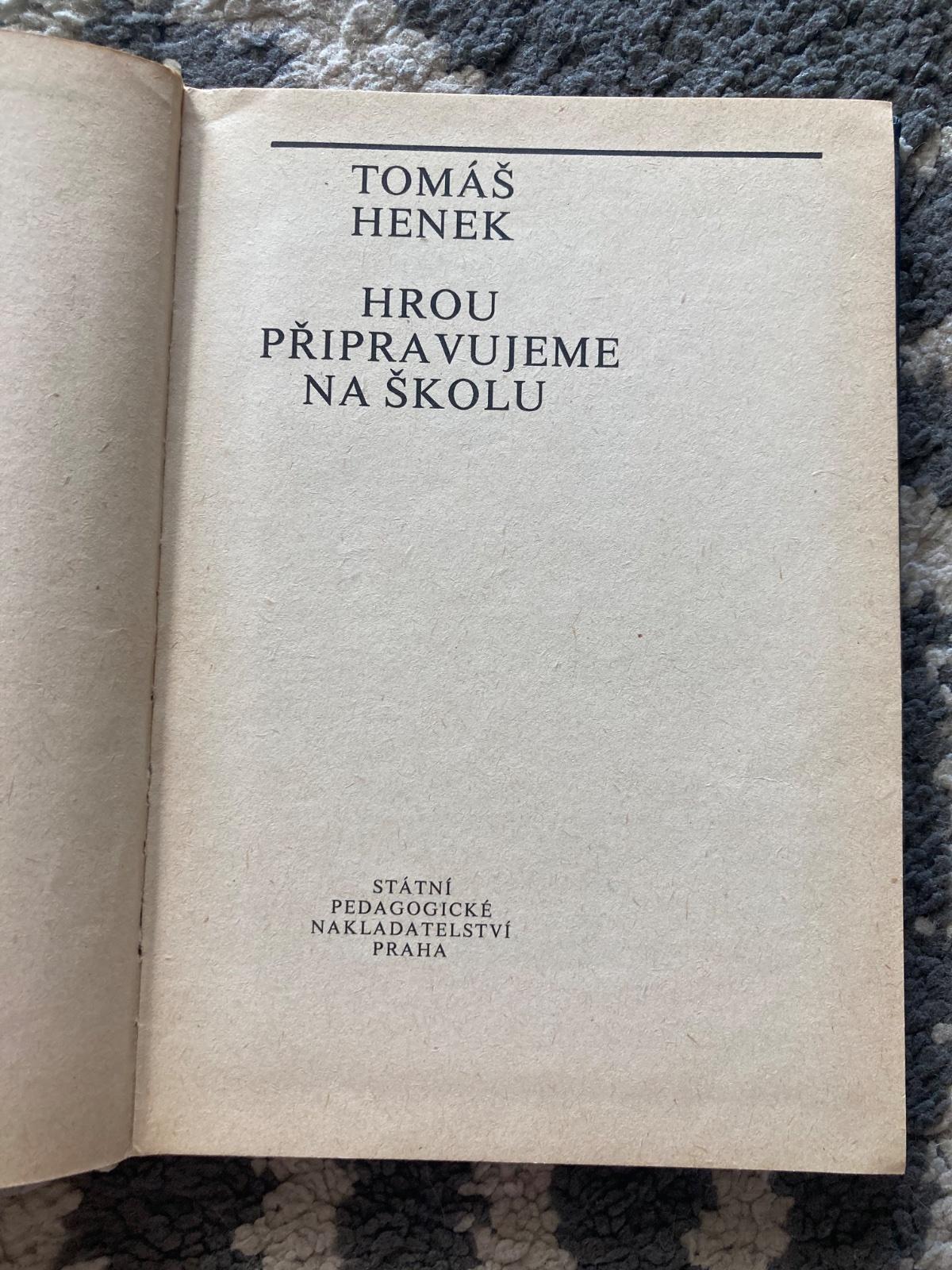 🔹Kniha Hrou připravujeme na školu od autora Tomáša Heneka, vydaná v roku 1983 (v Státním pedagogickém nakladatelství), je klasickou pedagogickou príručkou určenou predovšetkým rodičom predškolákov.