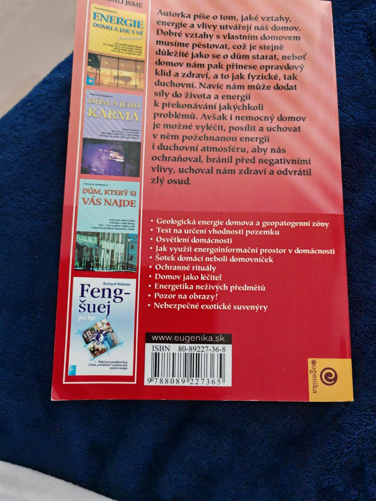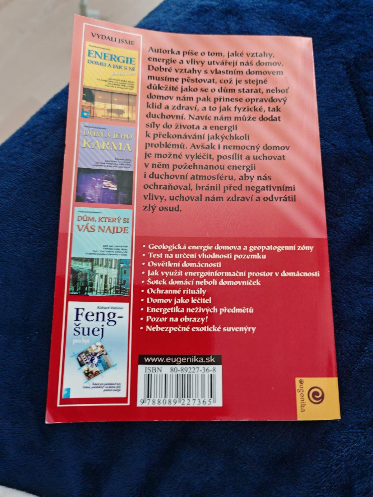 V pořadí již čtvrtá kniha ze známé edice Slovanské feng-šuej věhlasné ruské autorky Anastasii Semjonové se v rozšířené míře věnuje problematice energetiky domova a metodám, jak s ní pracovat. Domov, to je svérázný mikrosvět, uzavřená soustava, která má jak vlastní energetiku, tak vlastní osud. Domov může svým majitelům přinést štěstí a uchránit zdraví – to v případě, když vědí, jak se o něj starat, korigovat jeho negativní energetiku a vyhýbat se neblahým vlivům geopatogenních zón. V této knize je zařazena kupříkladu klasifikace domů s energetickými anomáliemi, jako jsou upírské domy, domy jako svěrací kazajky nebo narkotické domy, a také způsoby jejich ozdravení. Autorka uvádí mnoho konkrétních rad a příkladů ze života, jak poskytnout domovu „první pomoc“ v případech, když jeho energetické zdraví upadá, a radí, jak využít přednosti domova co nejlépe, přičemž se stejně jako v předchozích knížkách obrací k hluboké moudrosti starých Slovanů i Číňanů a objevuje, jak tyto dávné vědomosti mohou v dnešní uspěchané době pomoci i nám