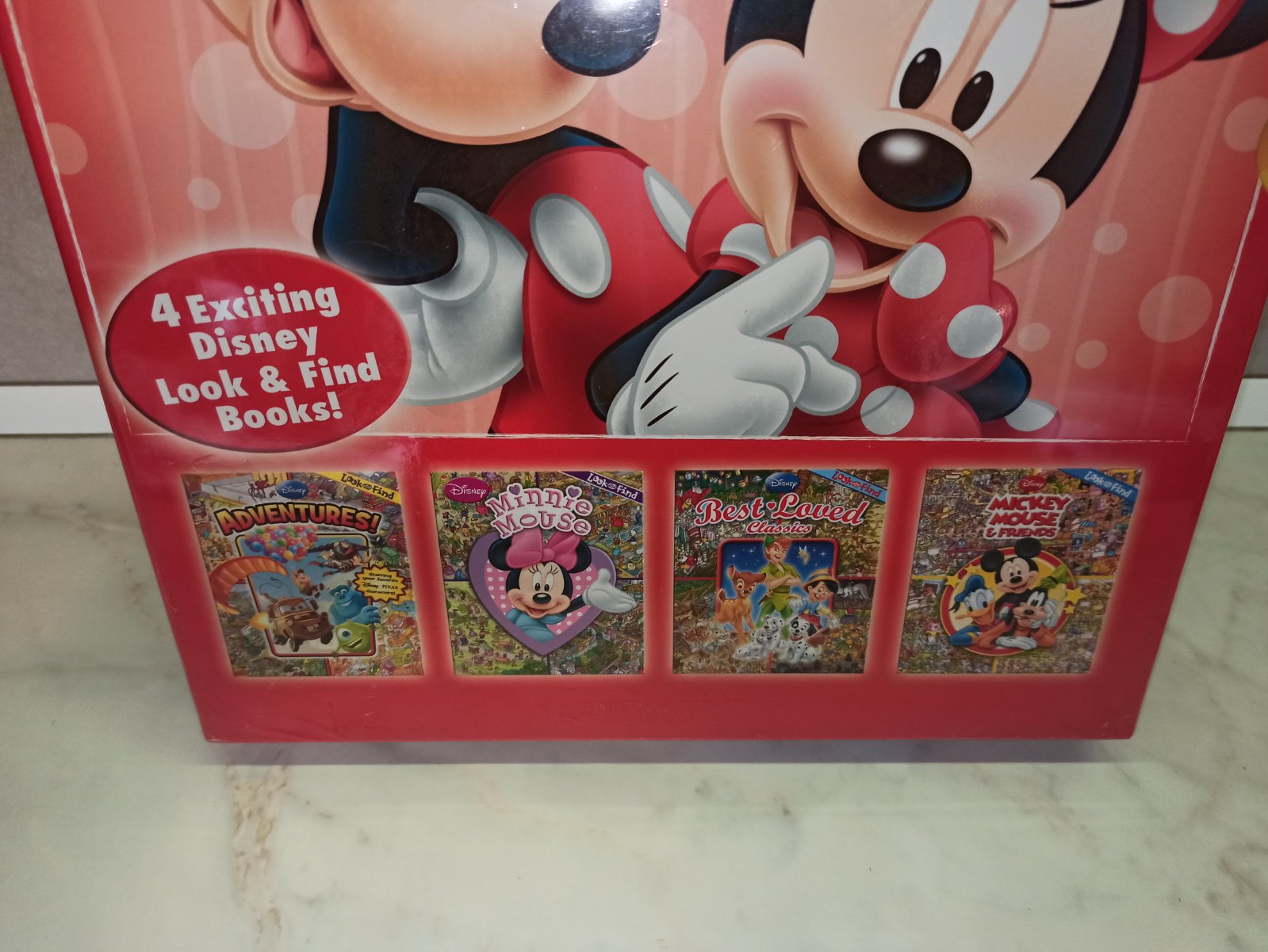 Tu su to styri knihy, jedna s Mickey Mouse, jedna s Minnie, jedna s klasickymi Disney pribehmi a posledna s tymi novsimi Disney pribehmi.