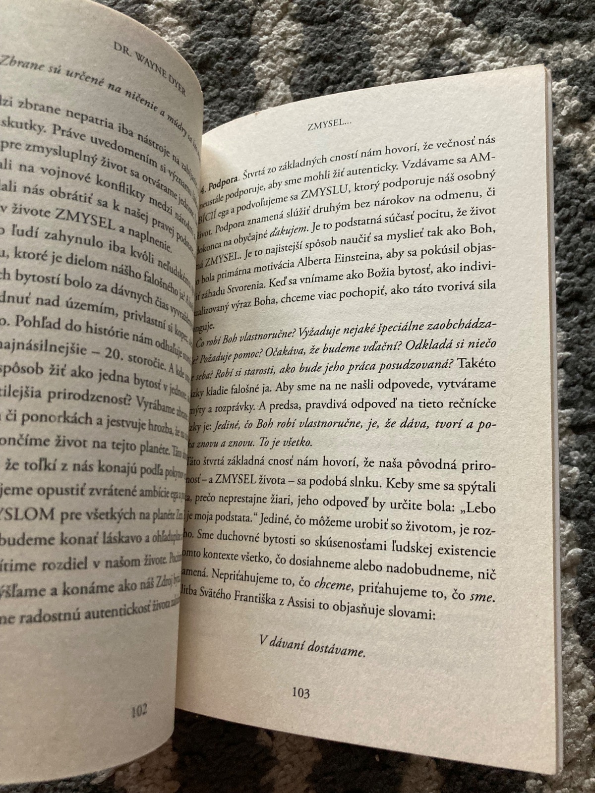 📌Dr. Wayne W. Dyer, autor bestsellerov No1 New York Times, hneď v úvodnej kapitole spomína múdrosť pôvodných obyvateľov púšte Kalahari o dvoch druhoch hladu. Malý hlad chce jedlo pre žalúdok, ale Veľký hlad, ten najväčší zo všetkých, je hladom po ZMYSLE...