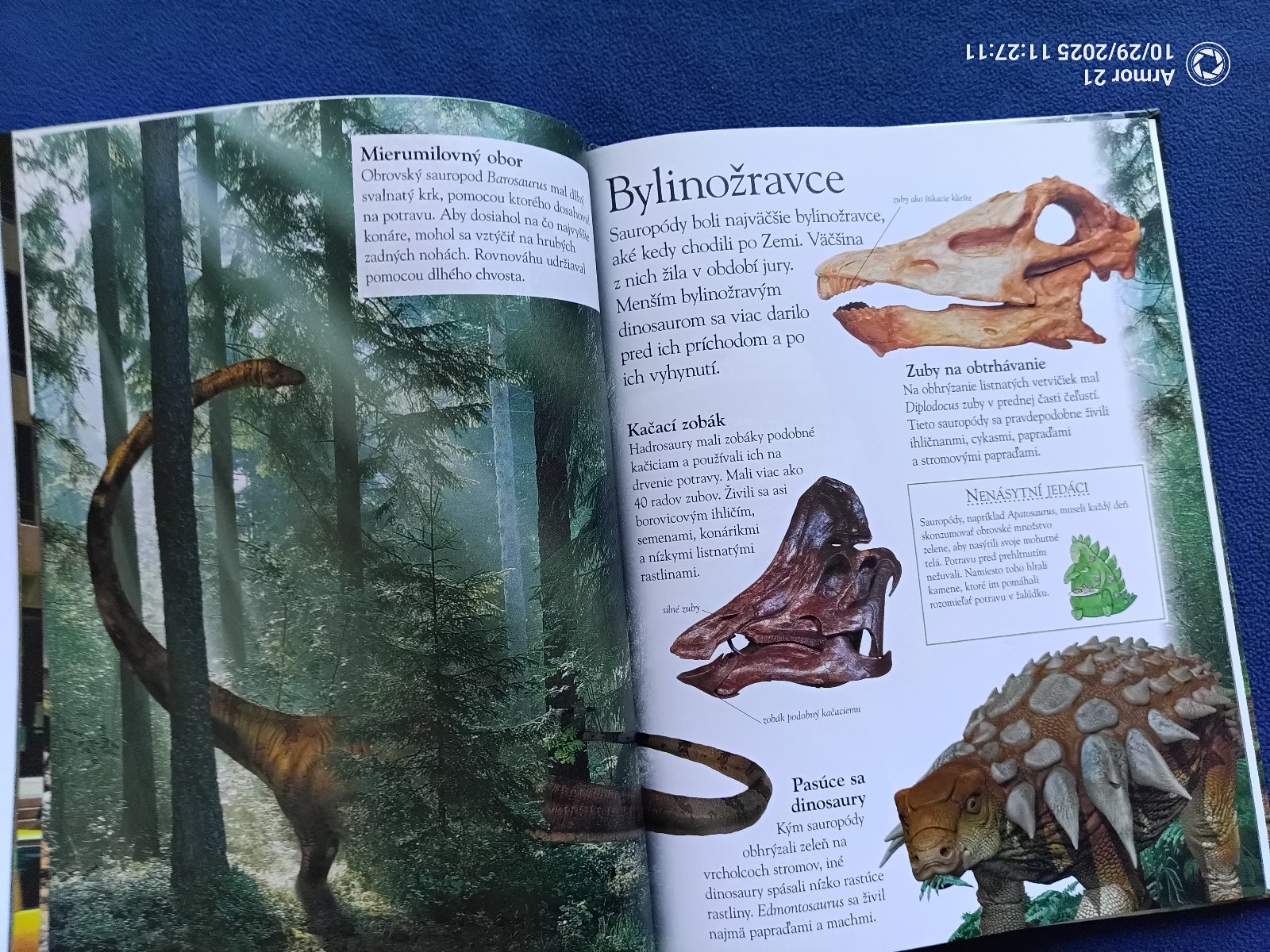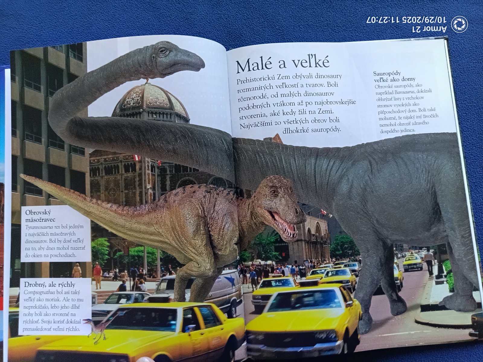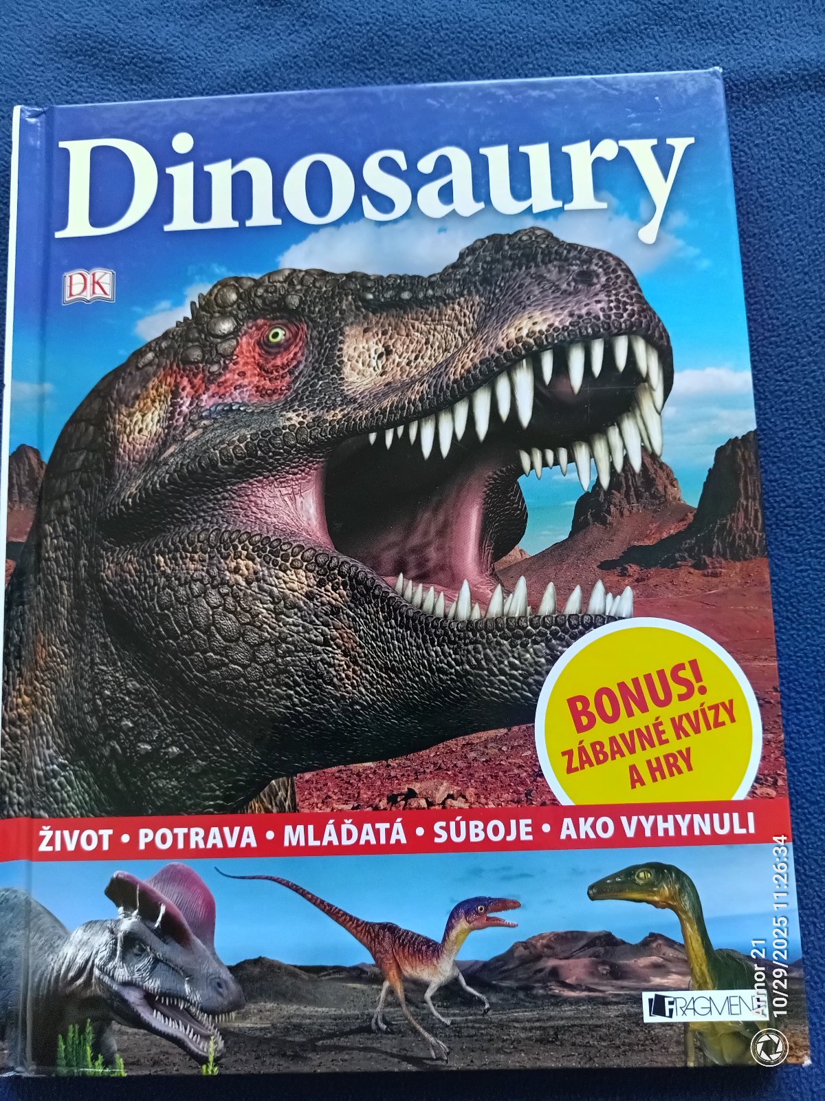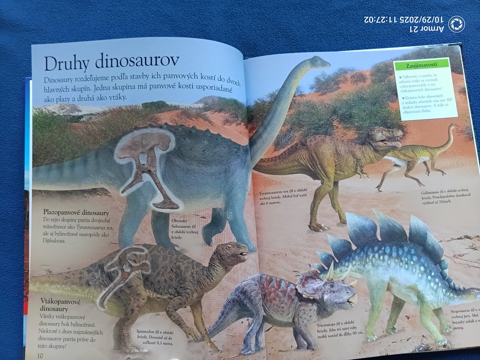 Vráť sa v čase o milióny rokov späť, do obdobia, keď na Zemi vládli dinosaury! Zisti viac o mierumilovných bylinožravých obroch z obdobia jury aj o desivom mäsožravcovi Tyranosaurovi. Žasni nad hrôzostrašnými svorkami Velociraptorov s pazúrmi ostrými ako nože. Vydaj sa za čriedami Hadrosaurov s čudesnými hrebeňmi na hlavách. Otestuj si svoje vedomosti v kvízoch a hrách a uži si skvelú zábavu!