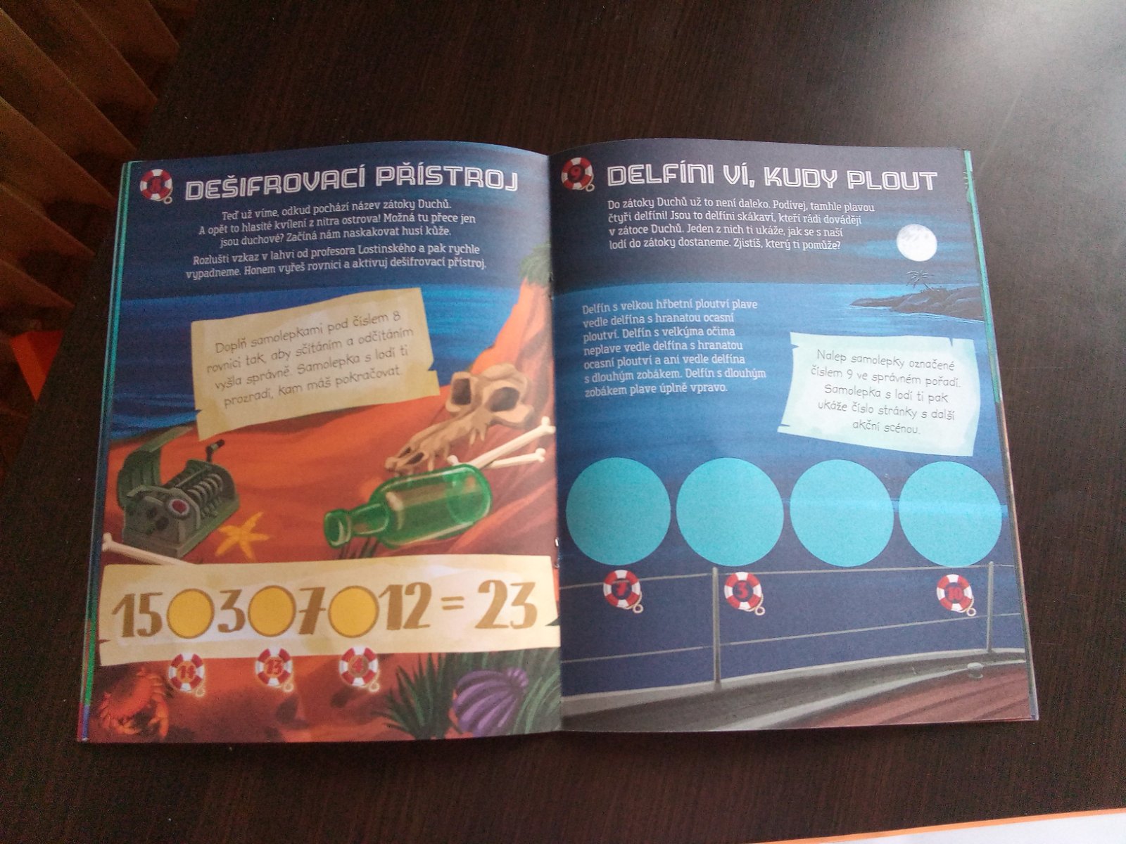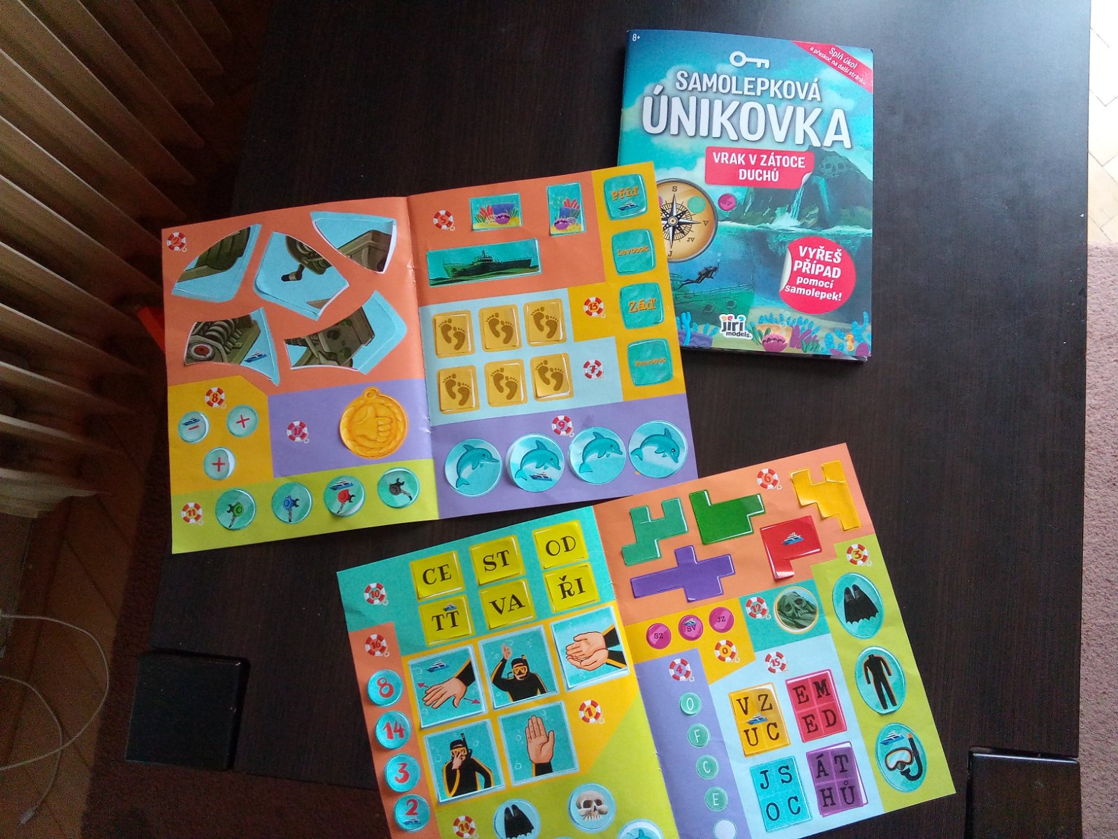 Unikovka skor pre chlapcov 8+.Precvicovabie scitania,odcitania,je tam aj jedno delenie.Dovtipovanie,skladanie.Kniha je ouzita ale odnimatelne nalepky som vratila naspat.Menej lepia ale este posluzia.
