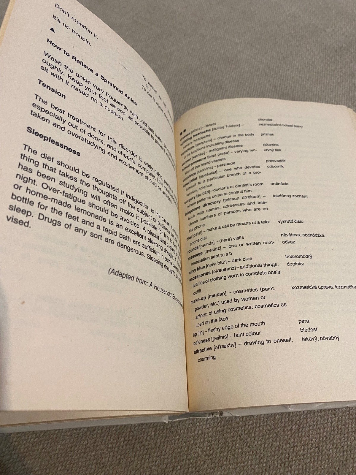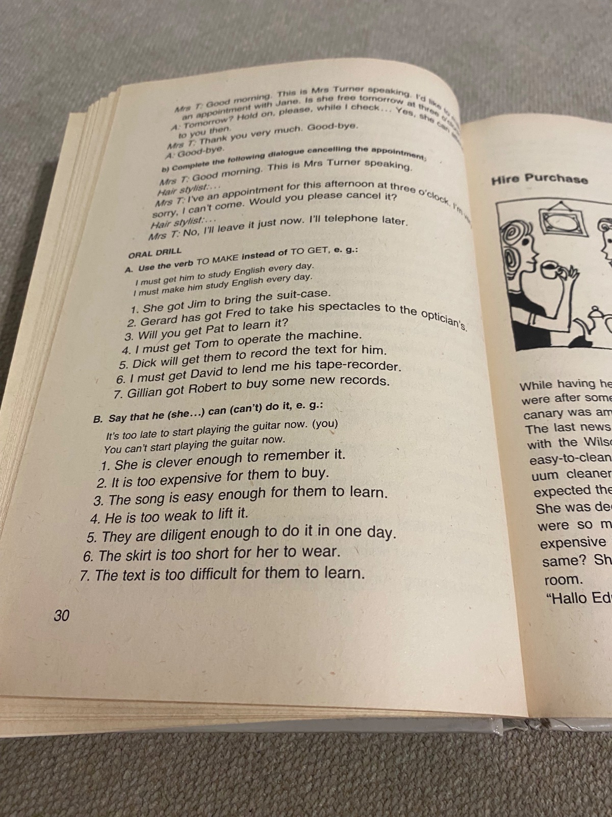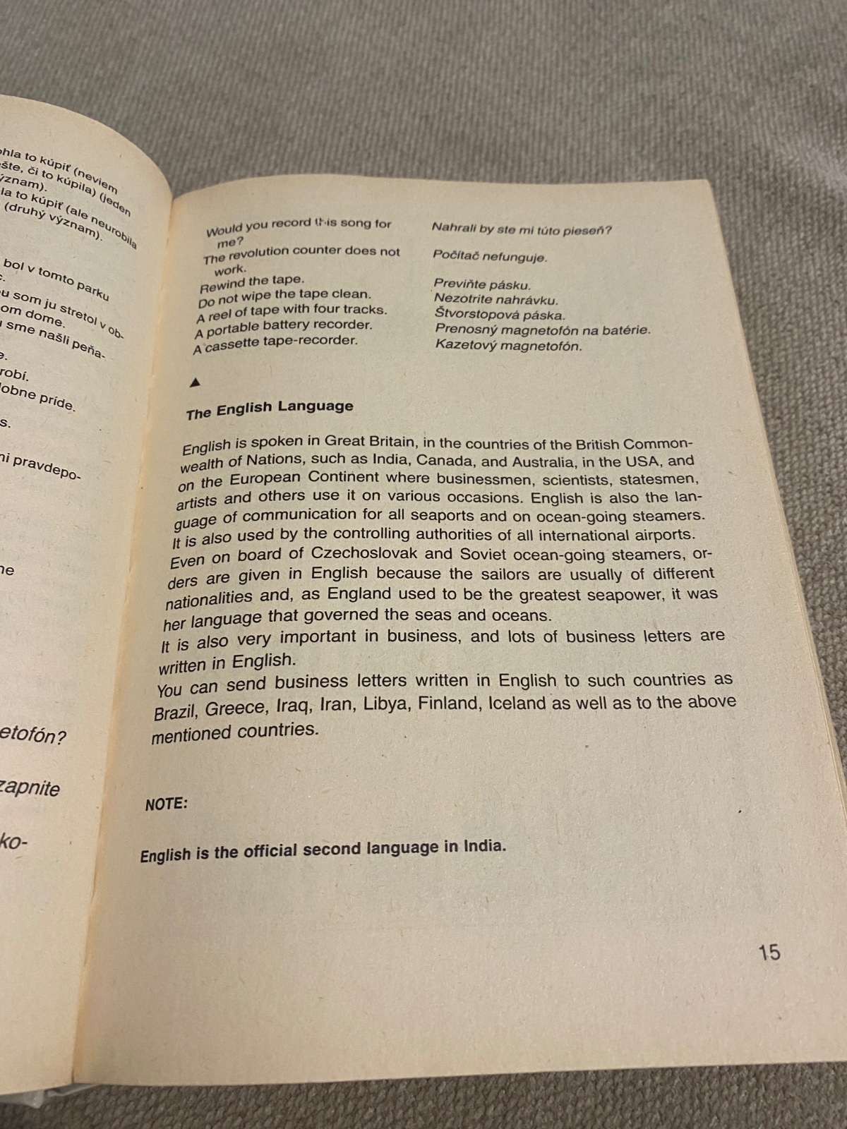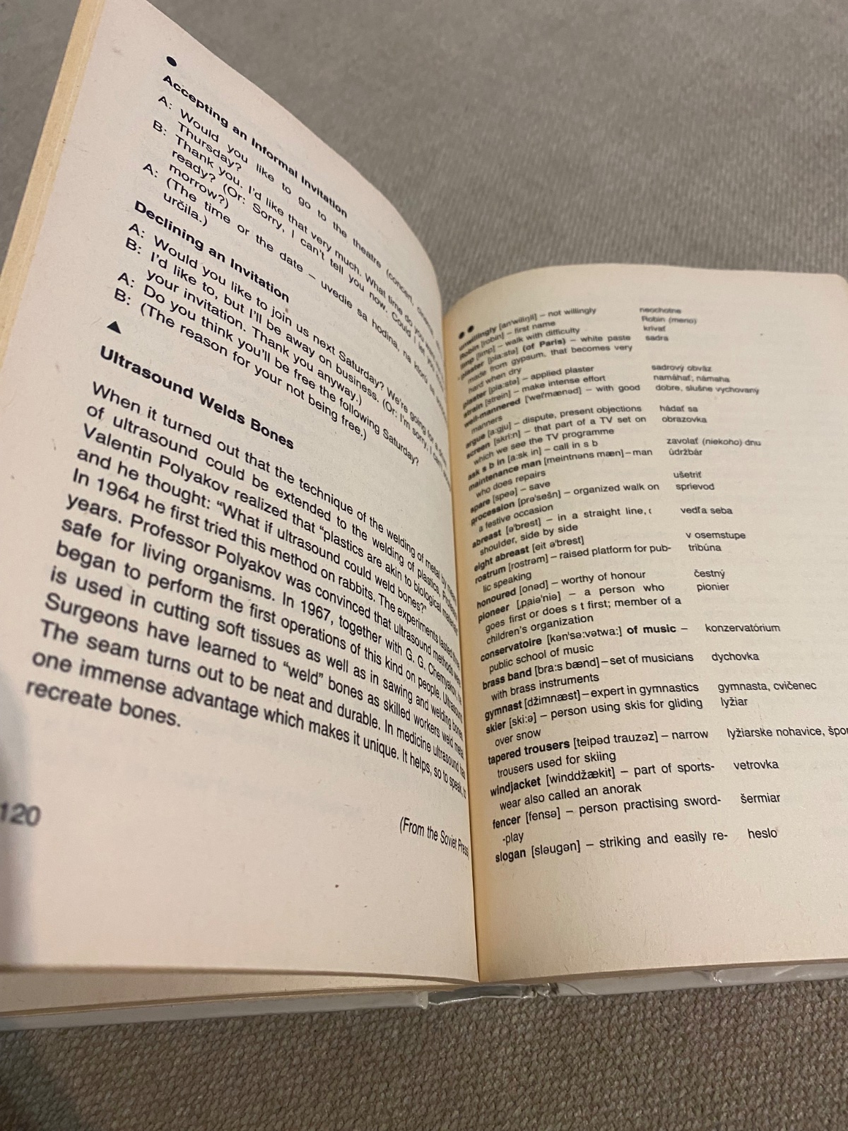 Konverzácia dopĺňa a precvičuje úvodnú tému. Upravili sme ju do stĺpcov, aby sa umožnilo čo najlepšie precvičenie. Najprv sa celý text prečíta, potom jeden poslucháč číta jeden stĺpec, zatiaľ čo druhý musí sám (bez čítania) konverzáciu dopĺňať. (Prvý poslucháč musí vlastnými slovami nadviazať na písaný text, ak sa jeho partner náhodou od danej témy vzdialil.)