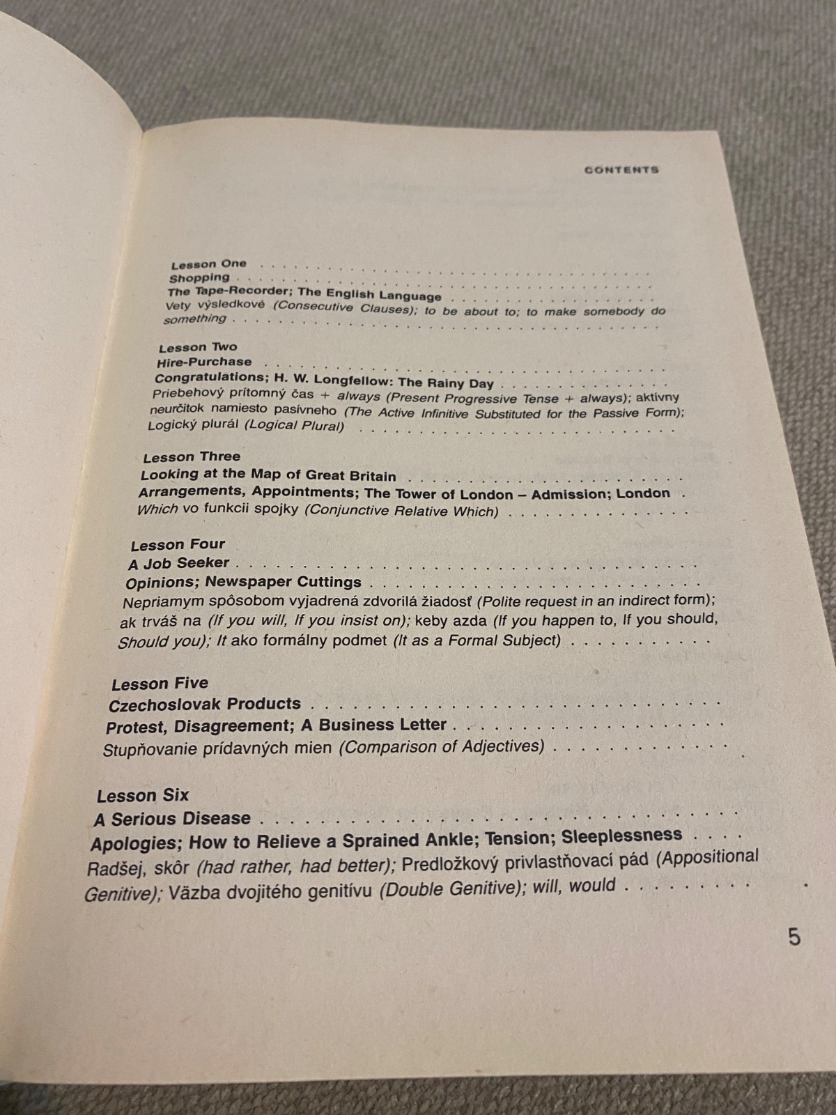 Slovná zásoba sa buduje na podklade frekvencie, gramatika sa uvádza pod zorným uhlom hovorovej angličtiny, nevylučujú sa anticipácie. Každá lekcia obsahuje úvodný text, konverzačné frázy a doplnkové číta- nie, za ktorými nasleduje slovníček obsahujúci parafrázované výrazy úvodného textu podľa toho, ako za sebou nasledujú v texte. Kurzorické čítanie, ktoré pozostáva z novinových článkov, ukážok z anglickej a americkej literatúry si vyžaduje prácu so slovníkom.
