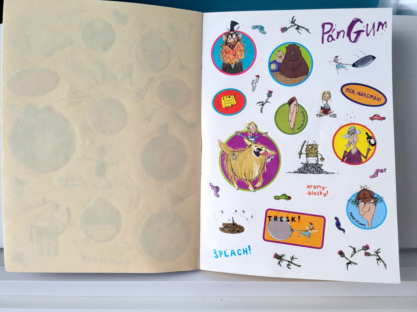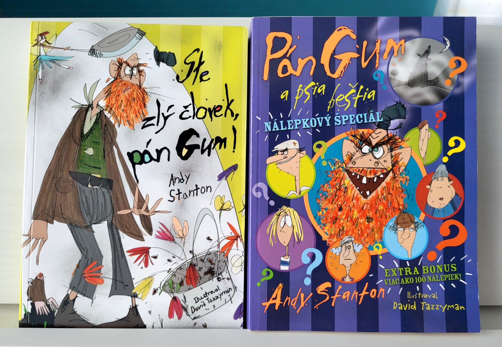 Posledné pokračovanie obľúbených ostrovtipných príbehov hrozivého pána Guma obsahuje tentoraz ešte niečo navyše – je v ňom vyše sto pestrofarebných nálepiek. A nový príbeh?