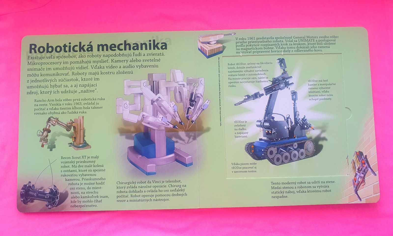 Deti sa dozvedia veľa nového a zaujmavého o rôzynch robotoch, inteligentných strojoch,ich funkciách a plno zaujmavostí zo sveta robotov.Skladačky robotov niesú súčasťou knihy.