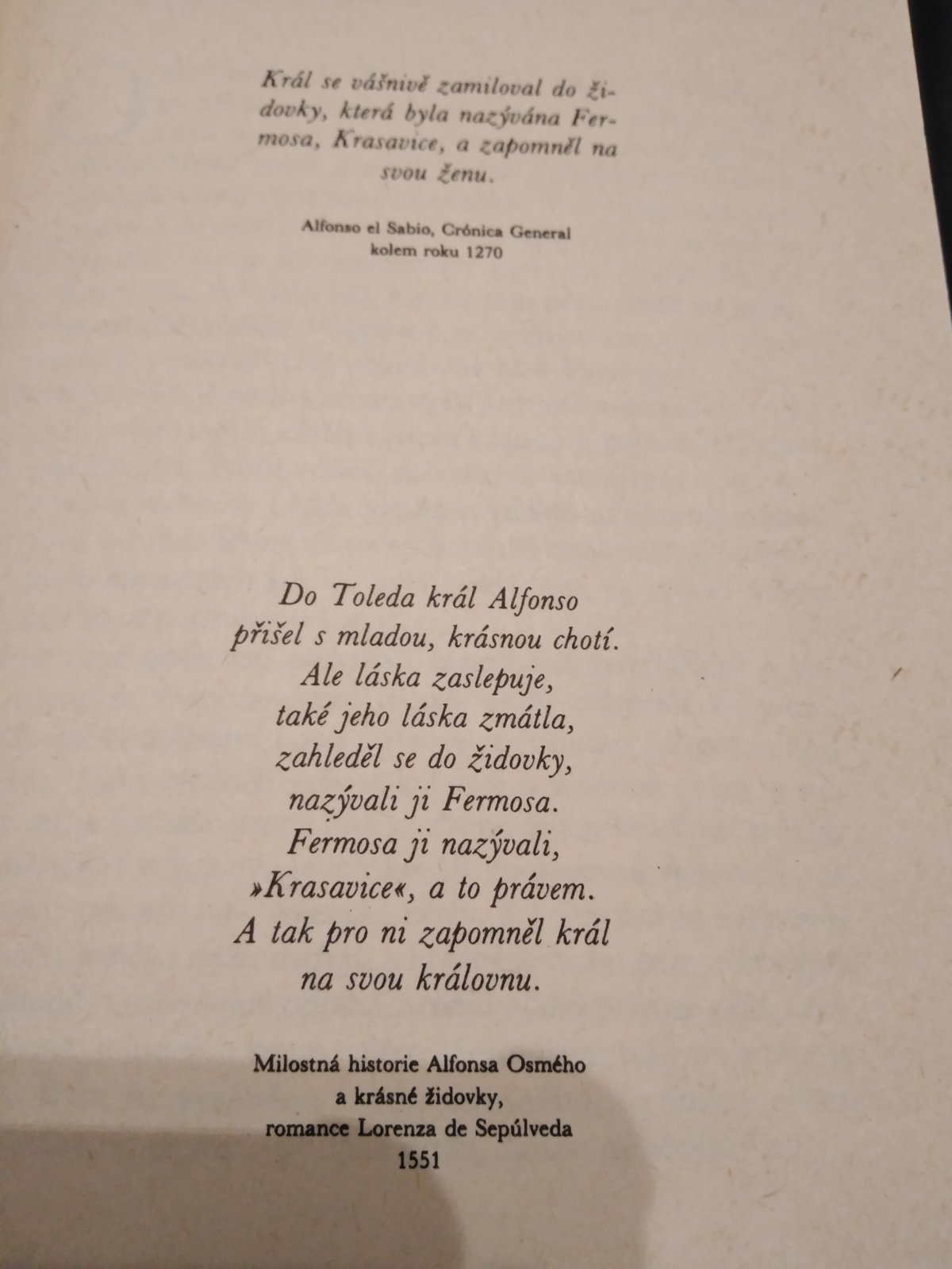 Príbeh sa zameriava na "Zlatý vek" židovskej kultúry v stredovekom Španielsku a opisuje aféru Alfonza VIII. s židovkou Raquel v Tolede.
