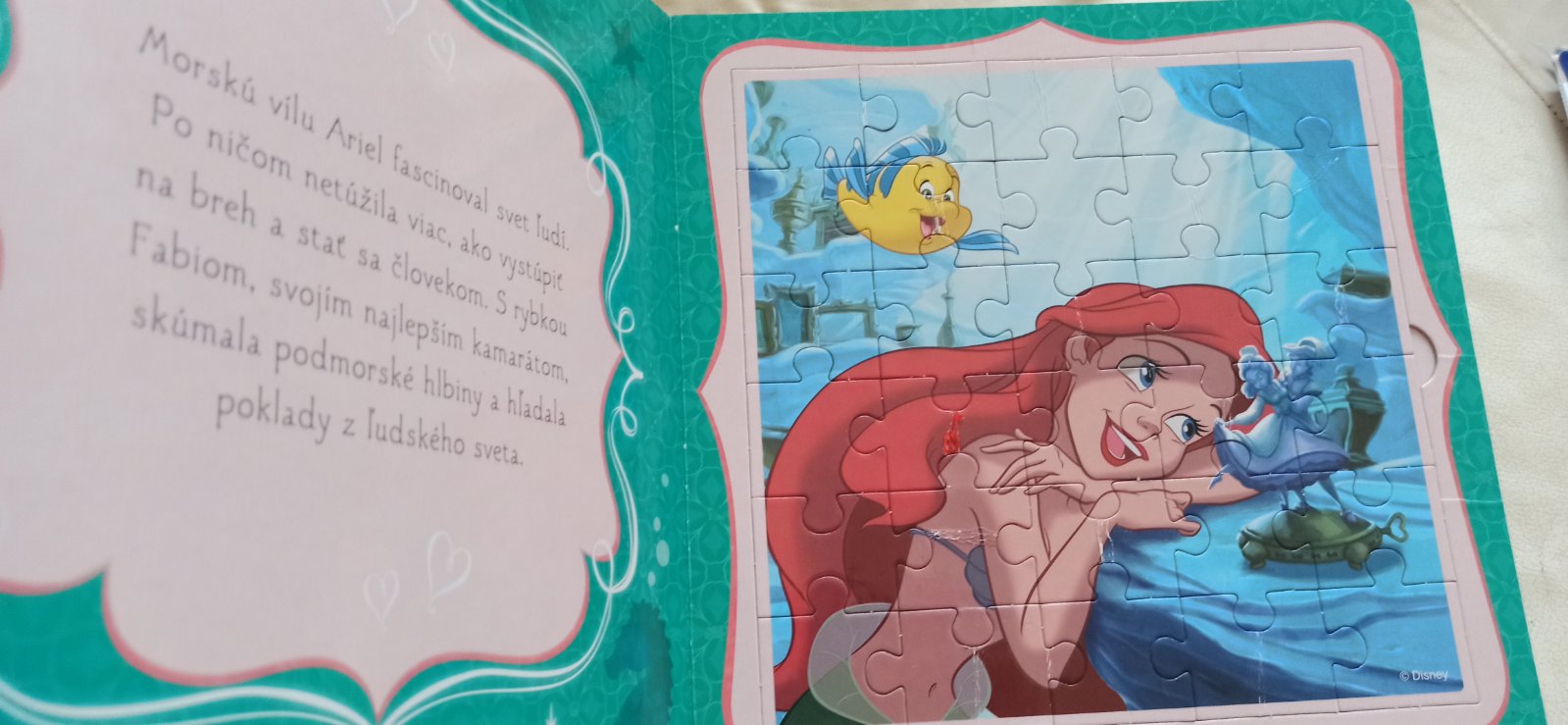 Zažite v kúzelnom svete príbehov od spoločnosti Disney fantastické dobrodružstvá so svojimi obľúbenými princeznami. Prečítajte si príbehy o láske, vytrvalosti a priateľstve, ktoré sú v tejto rozprávkovej knihe obohatené o pestré skladačky. Vkĺznite do sveta fantázie a staňte sa aspoň na chvíľu princezničkami. Kniha obsahuje štyri farebné skladačky, ktoré pomáhajú rozvíjať psychomotorické zručnosti detí, učia ich sústrediť sa a podporujú priestorovú predstavivosť... tvrdé stránky (ako leporelo, chybičky krásy -vid foto)