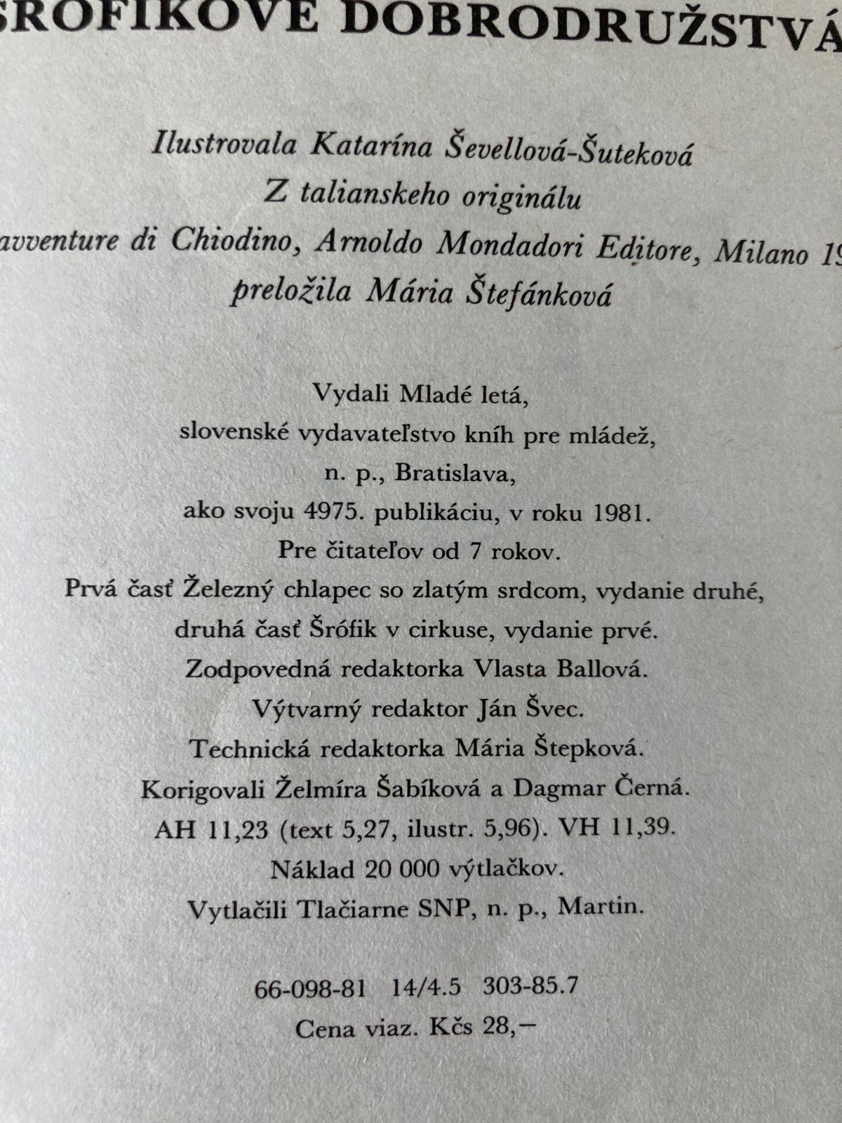 Šrófikove dobrodružstvá -prvé vydanie 1981