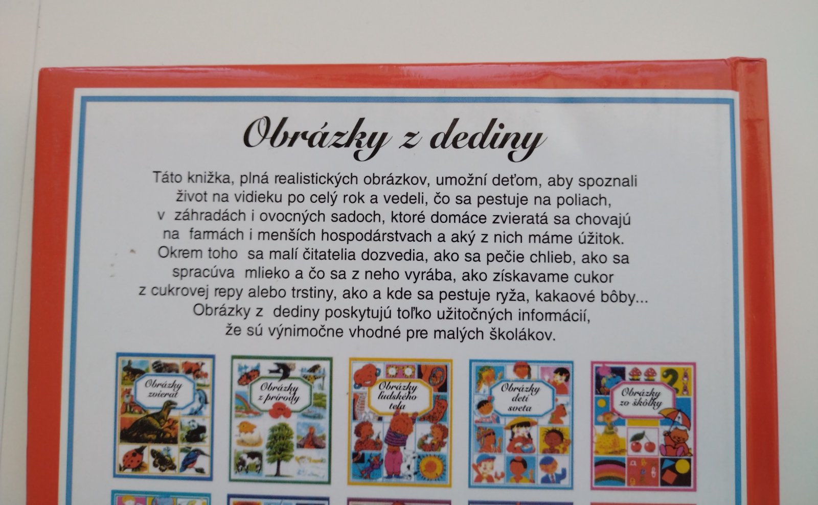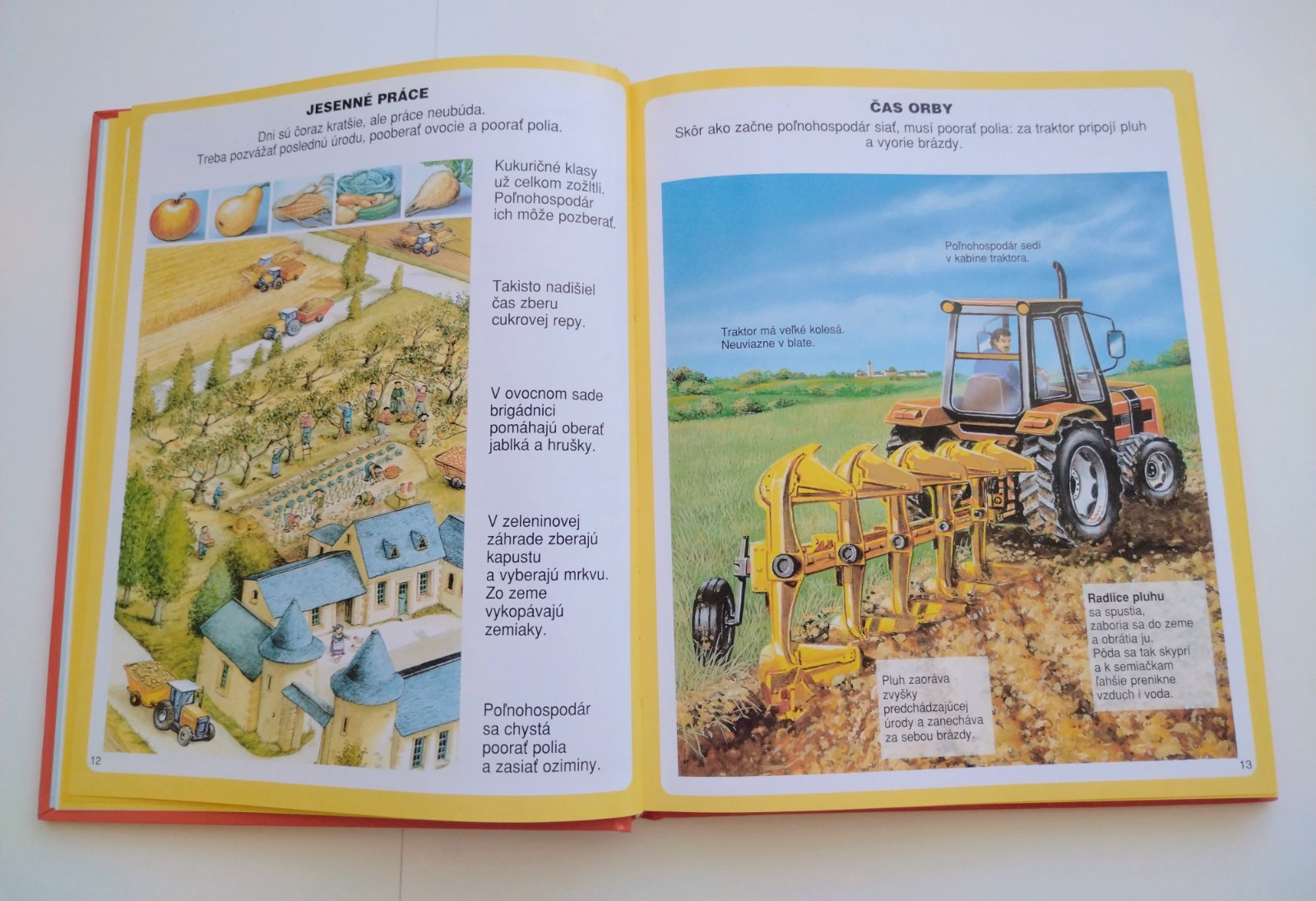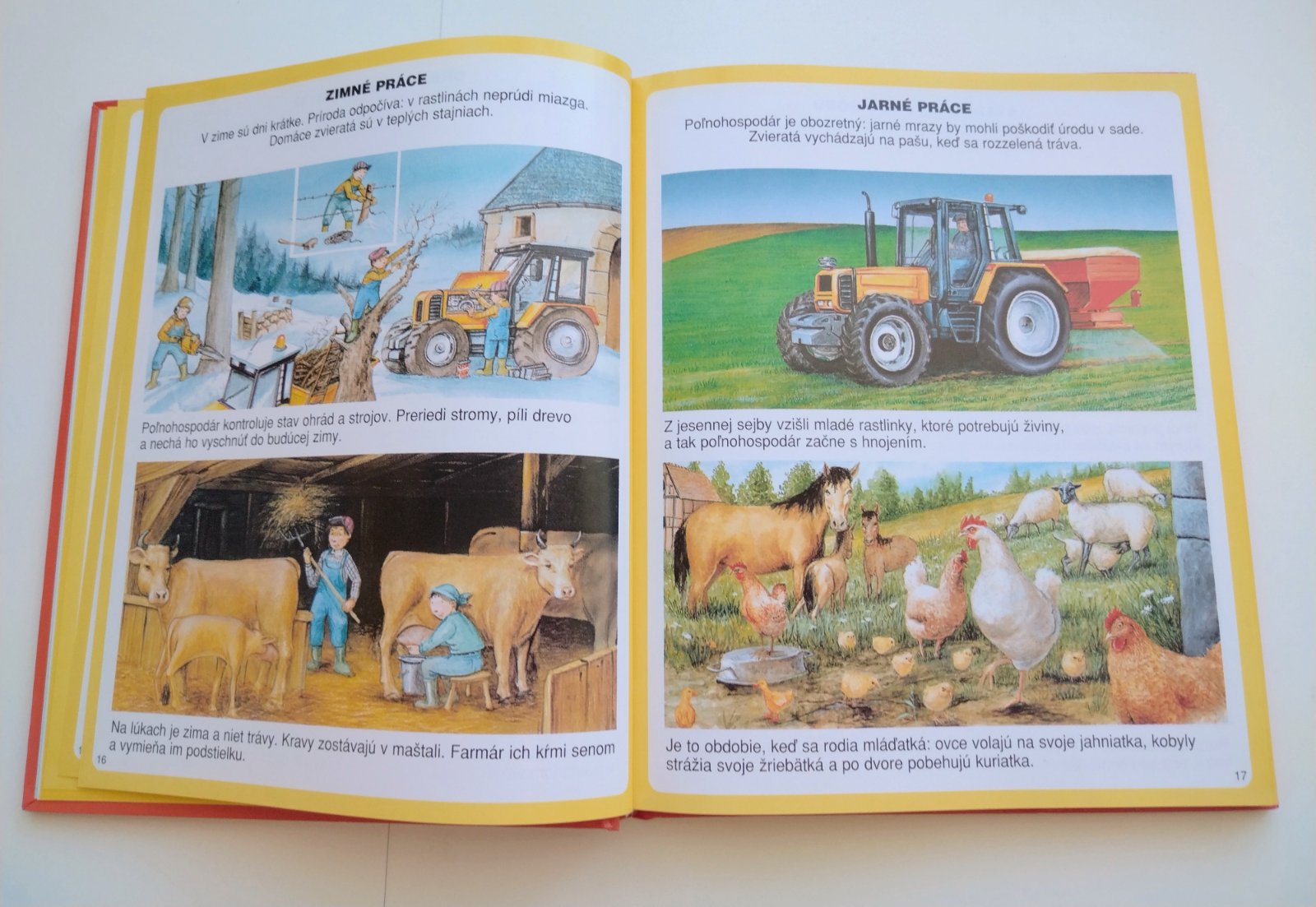 Detská encyklopédia s názvom Obrázky z dediny, ktorej autorkou je Émilie Beaumont. Kniha obsahuje realistické ilustrácie a jednoduché texty, ktoré deťom približujú život na vidieku, hospodárske zvieratá, stroje a práce na farme počas celého roka.