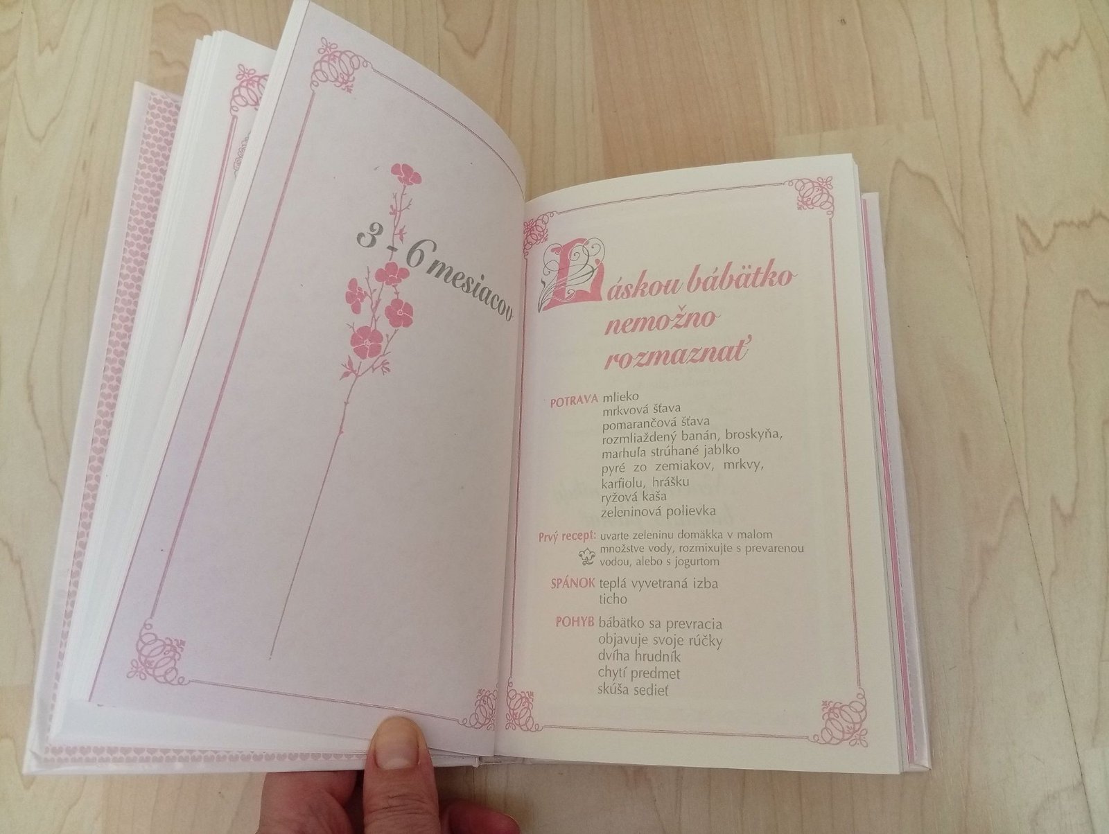 Do knižky s môžete zapísať zaujímavé informácie o bábätku do jedného roka, vložiť fotografie, urobiť otlačok ručičky a nožičky, Je rozdelená do častí po 3 mesiacoch.