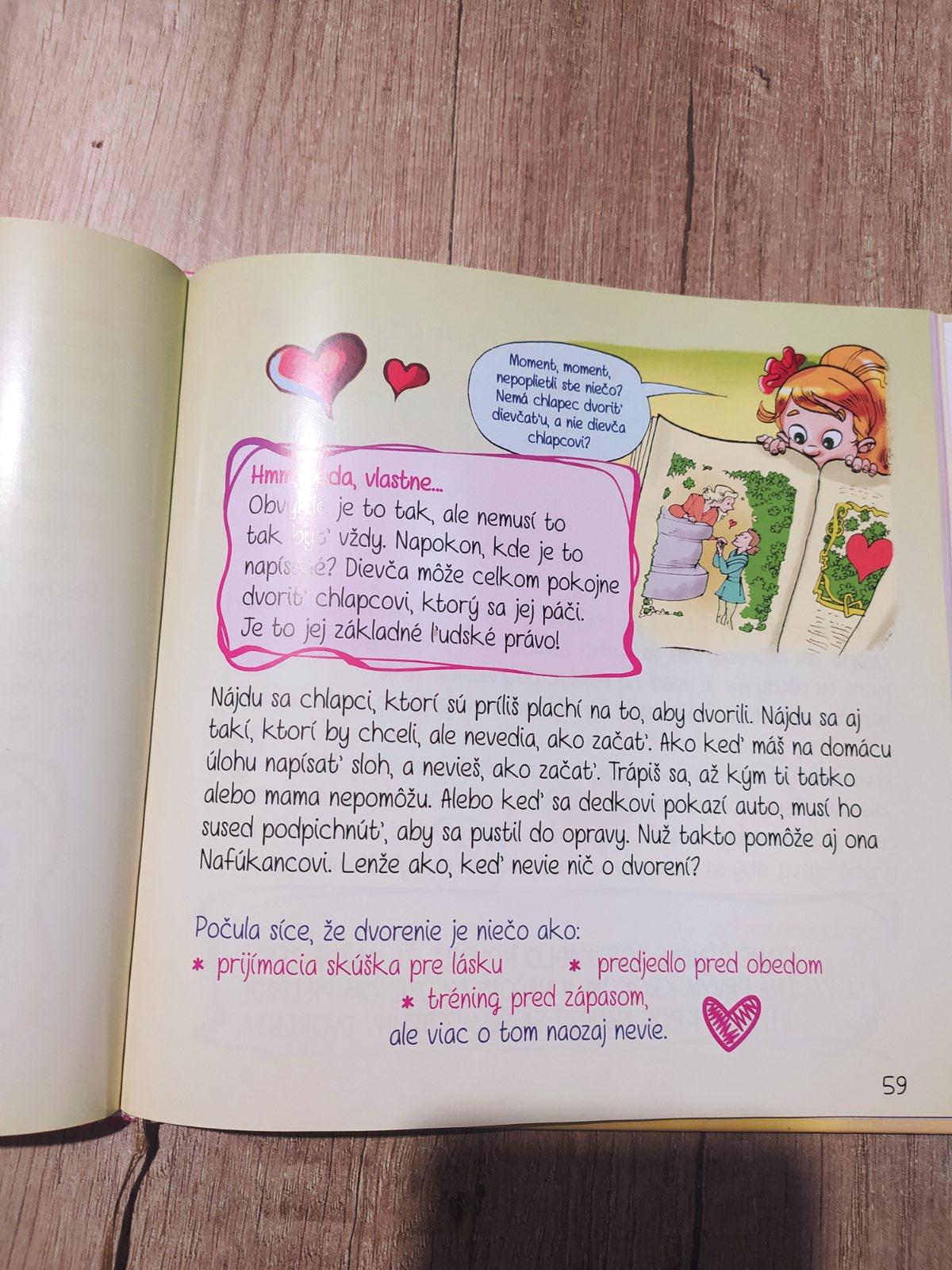 Prvá láska je ako písomka z matematiky. Objaví sa, keď ju najmenej očakávaš. Nepripusti, aby ťa prekvapila a prepadla nepripravenú. Prečítaj si túto knihu a dozvieš sa, ako máš riešiť všetky ľúbostné problémy.",v