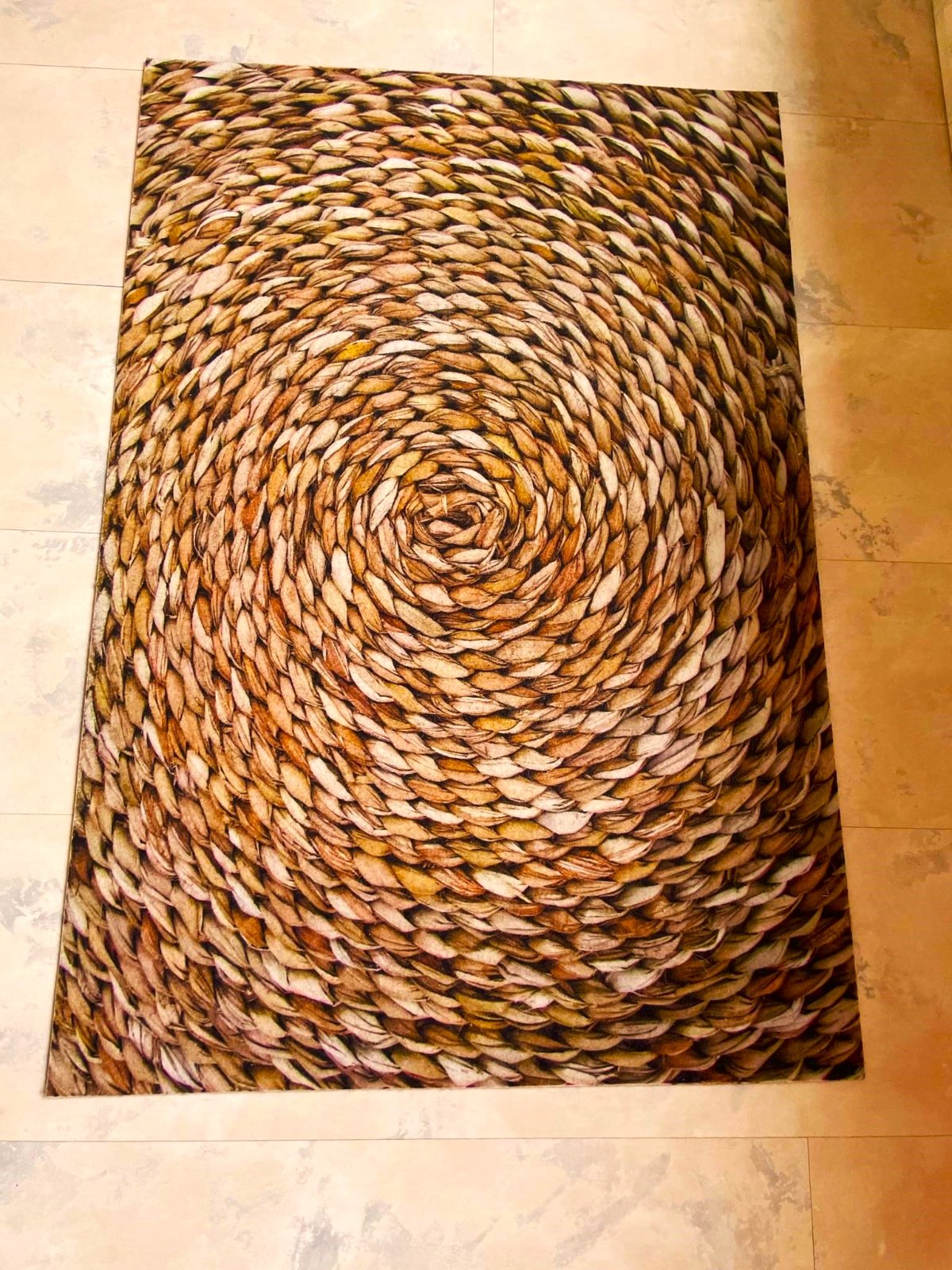 vysokokvalitný málo používaný koberček vhodný kdekoľvek,nemusíte ho vysávať, stačí len pretrieť mopom alebo handrou,ak doma máte psa alebo deti, je pre vás ideálnou voľbou.Vinylový koberec je tiež nehorľavý a zároveň dobre izoluje. Chráni parkety pred poškriabaním a oceníte ho najmä v kuchyni - nebude vám zima od nôh a bude sa ľahko čistiť,je protišmykový . Vyrobený z kvalitného viacúčelového polyesteru a potlač je robená atramentami na báze prírodných pigmentov s vysokou stálosťou farby. Nemnožia sa v ňom baktérie, takže je vhodný pre alergikov i astmatikov.