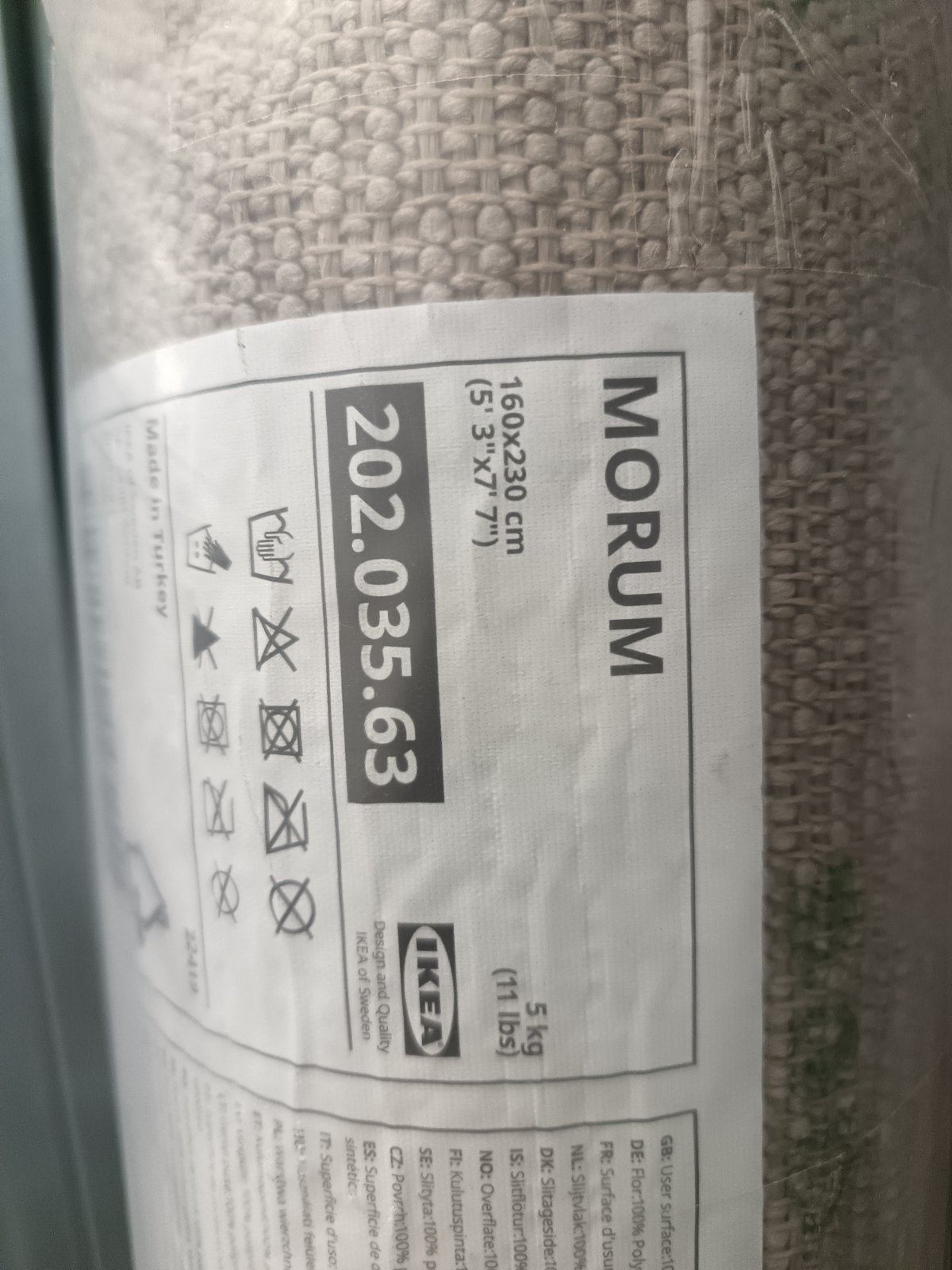 Novy nerozbaleny koberec Morum Ikea, zakupeny ako nahradny takeho isteho, ktory sa velmi osvecil, ale zial uz nepotrebujeme. Recenzie 5-hviezdickove.