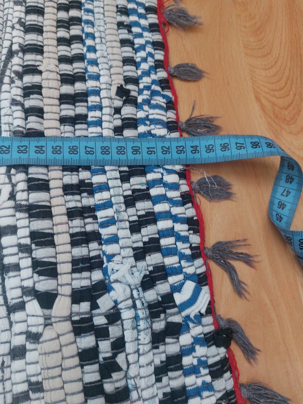 Chvíľu používané koberčeky, dajú sa prať v práčke.Romery: 149cm x 80cm. Možnosť zaslania aj poštou. Farba je bielo-modrá. Fotila som ho na viacerých miestach, ale najlepšie je farba zachytená na po...