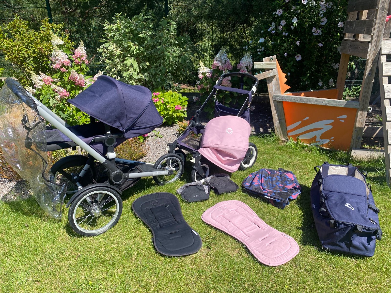 podvozok Buffalo, spodný košík pláštenka, taška, 3 striešky (originál modrá, letná ružová- tenšia, a letná priedušná so sieťkami aj so sieťkou na celý kočík sa dá natiahnuť), náhradné prúty na striešku, dve podložky- čierna, ružová, športový sedák, hlboká vanička. Pridám aj zimné rukavice na kočík zn. Kiddy.